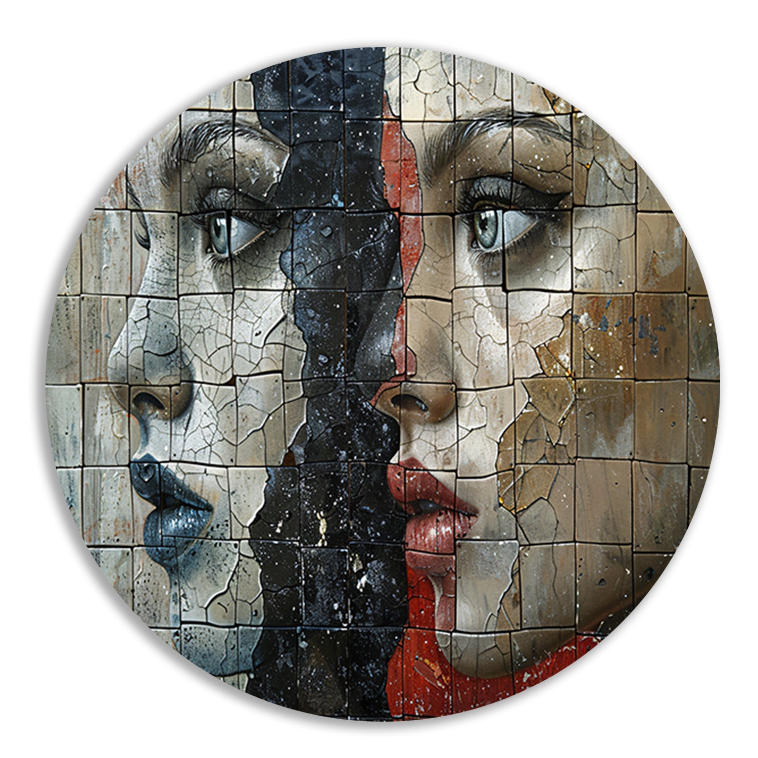 Twee Gezichten Verdeeld door Kleur en Textuur aluminium muurcirkel