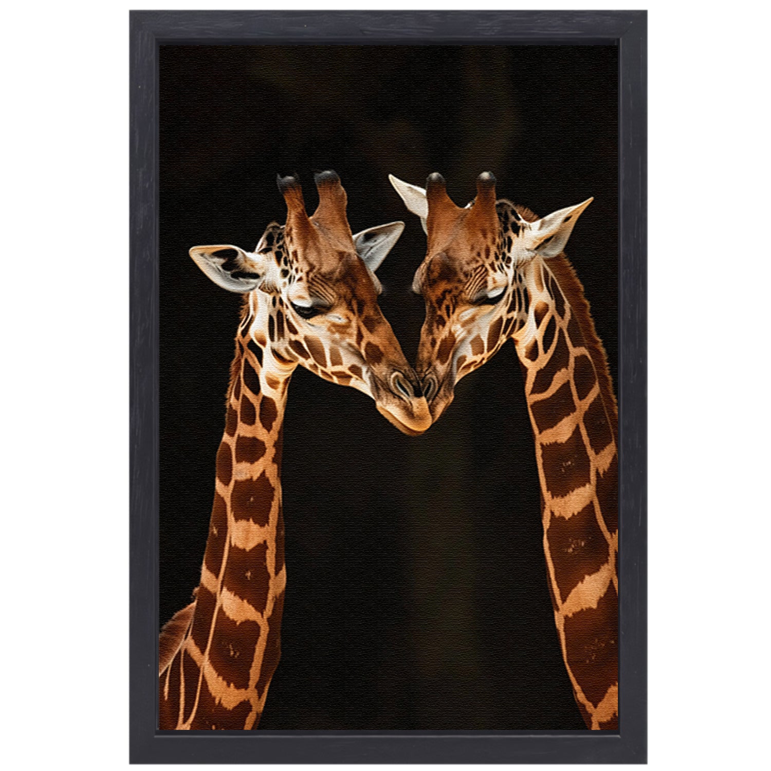 Twee giraffen tegen donkere achtergrond canvas met baklijst