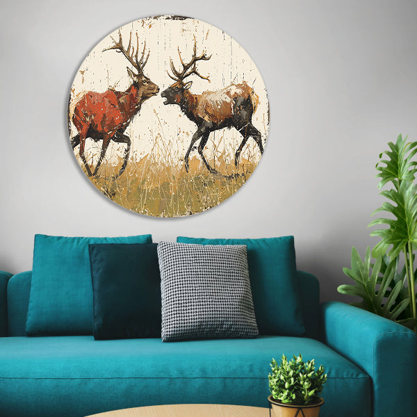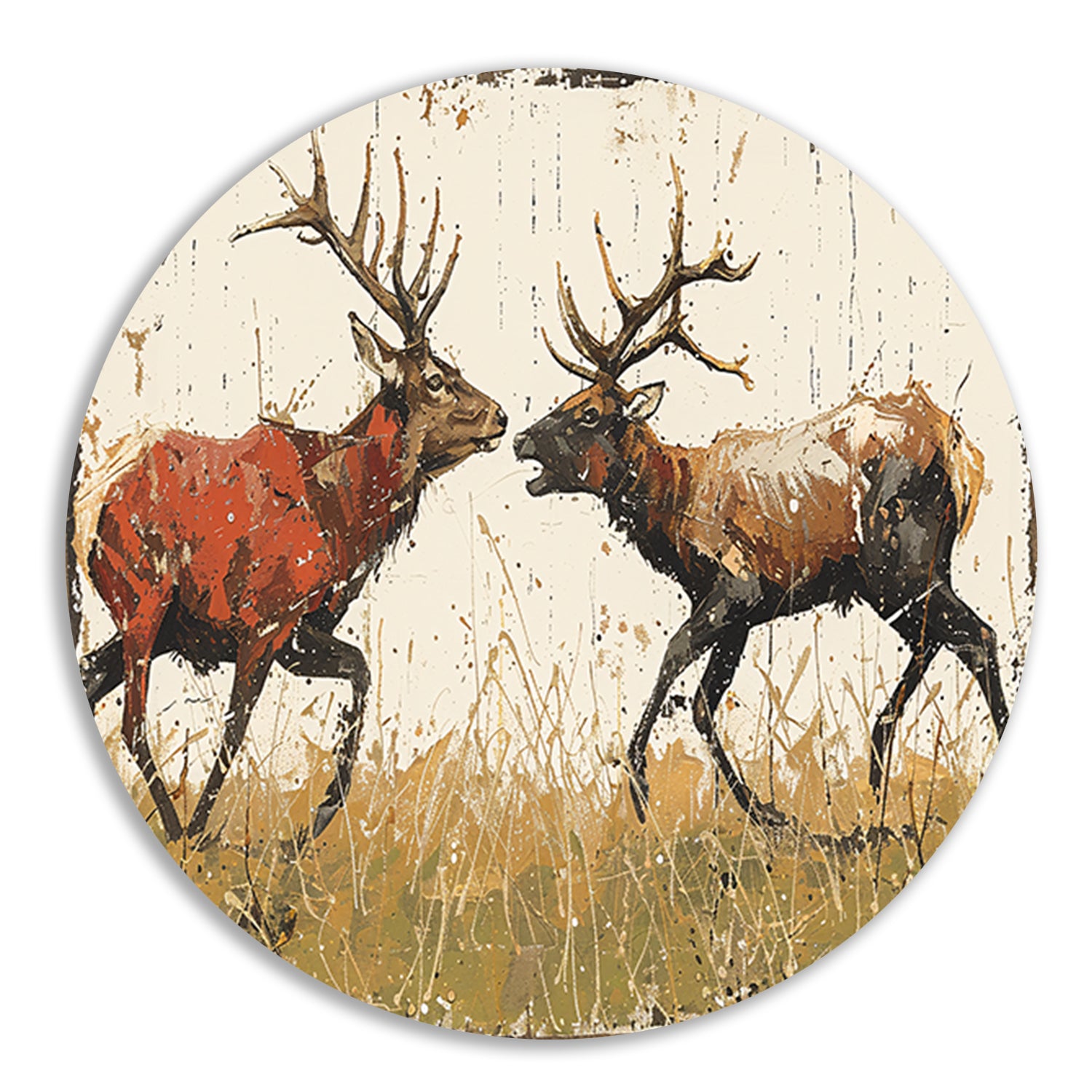 Twee Herten Gevecht Bos aluminium muurcirkel