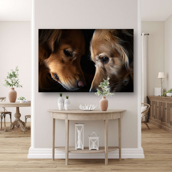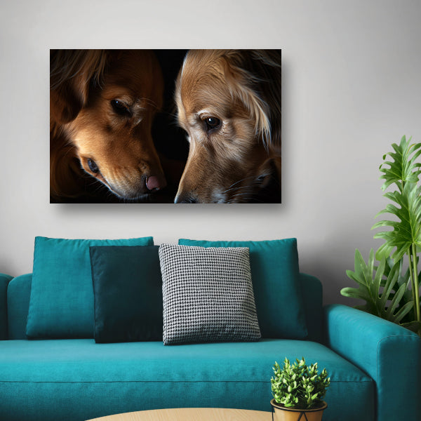 Twee honden in een intieme setting canvas met baklijst