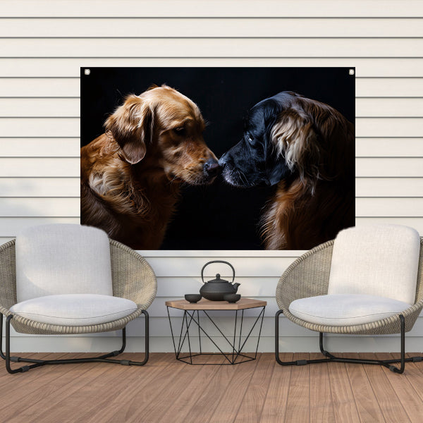 Twee honden raken elkaar met de neus tuinposter