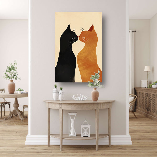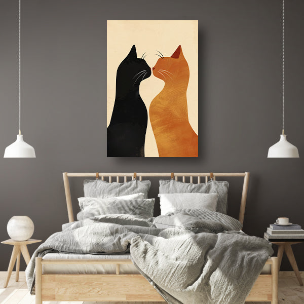 Twee katten in liefdevolle pose met aardetinten canvas met baklijst