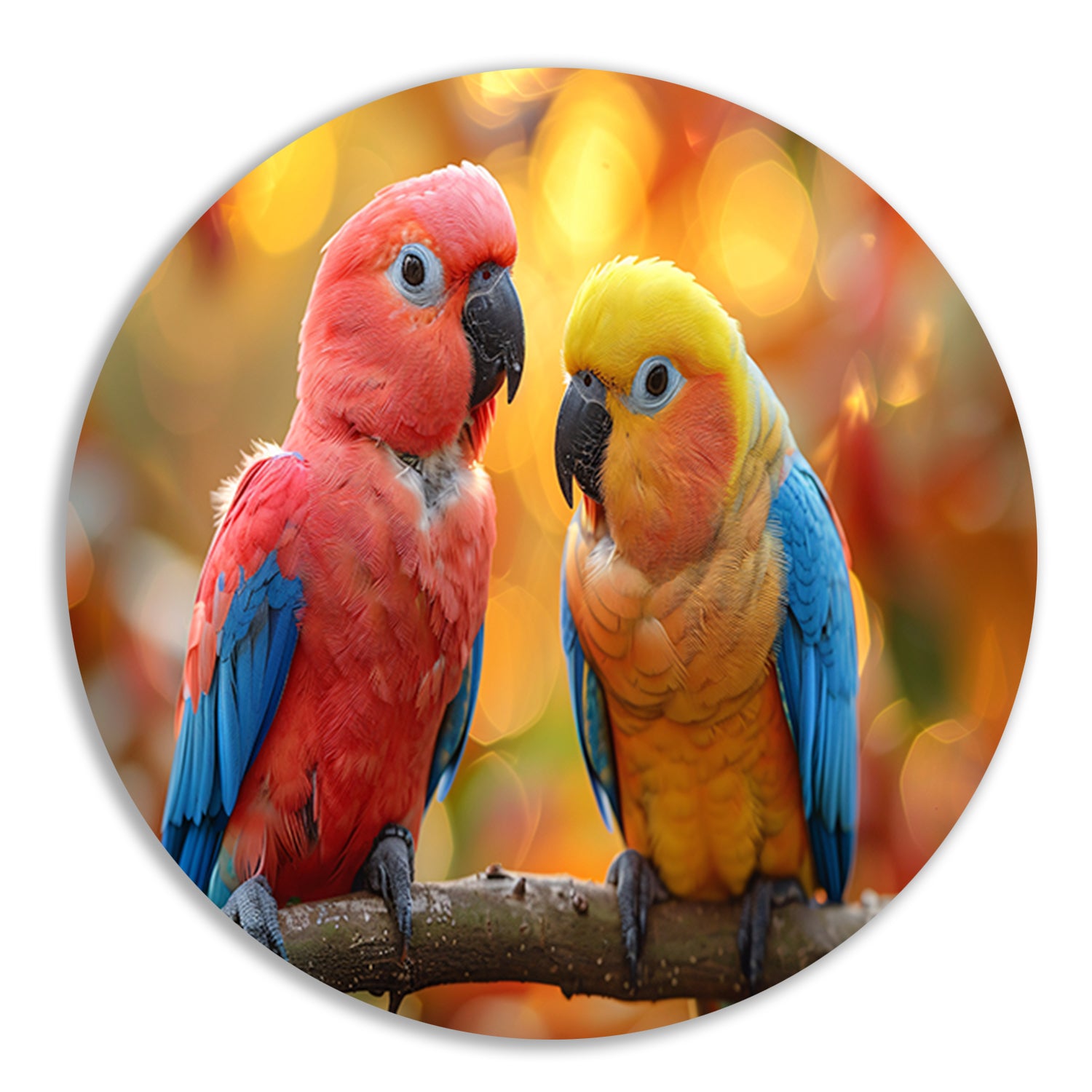 Met deze muurcirkel haal je niet alleen een prachtig kunstwerk in huis, maar ook een stukje natuur en kleur. De levendige afbeelding van de papegaaien zorgt voor een vrolijke en speelse touch in elke ruimte.
