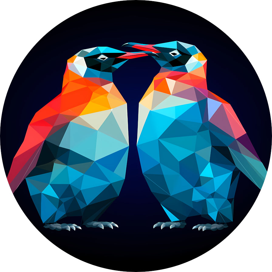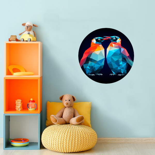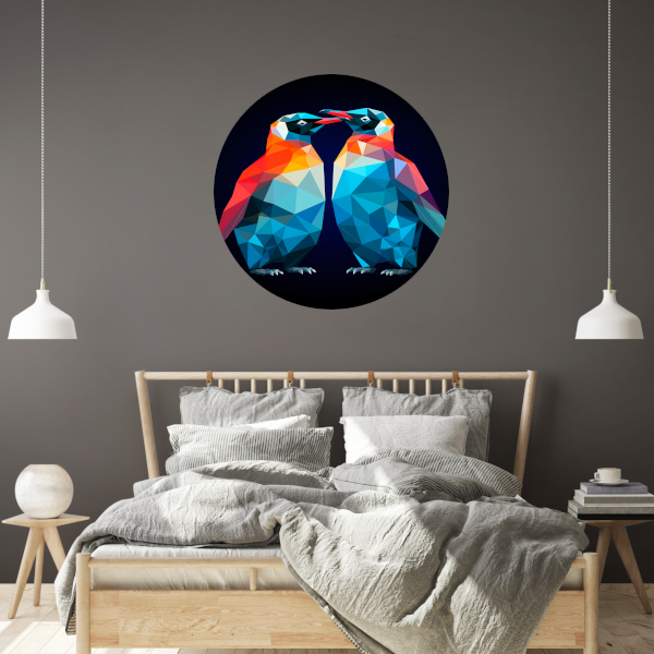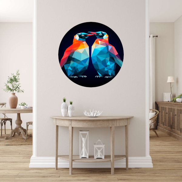 Twee Pinguïns in Geometrische Harmonie aluminium muurcirkel