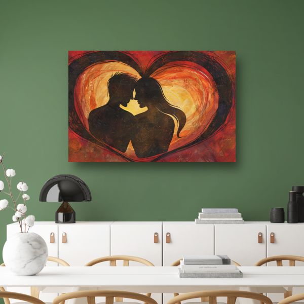 Twee Silhouetten en Hart in Warme Tinten canvas met baklijst