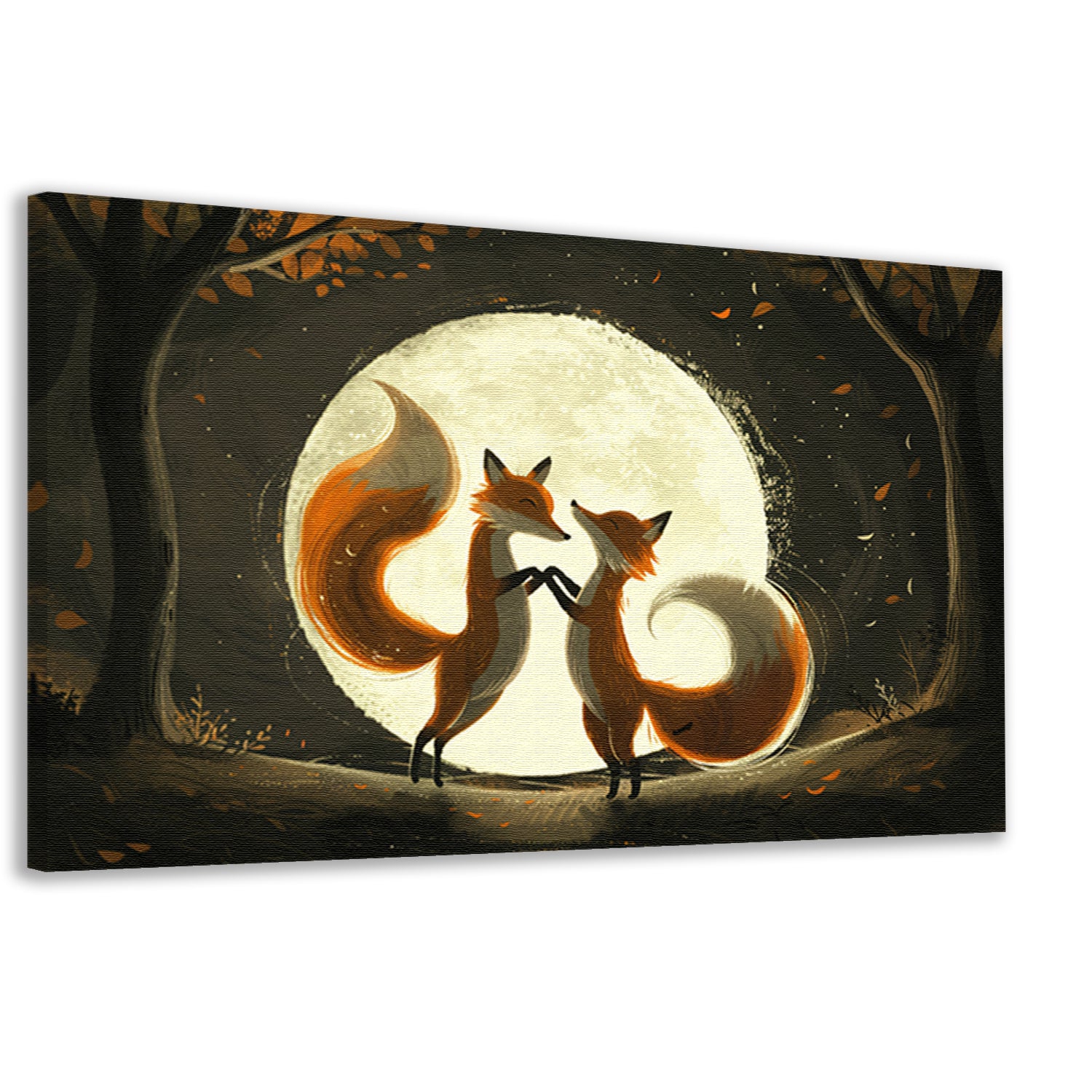 Twee vossen dansen onder de volle maan canvas