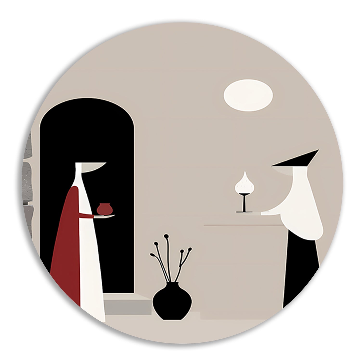 Twee Vrouwen in Minimalistisch Stijl aluminium muurcirkel