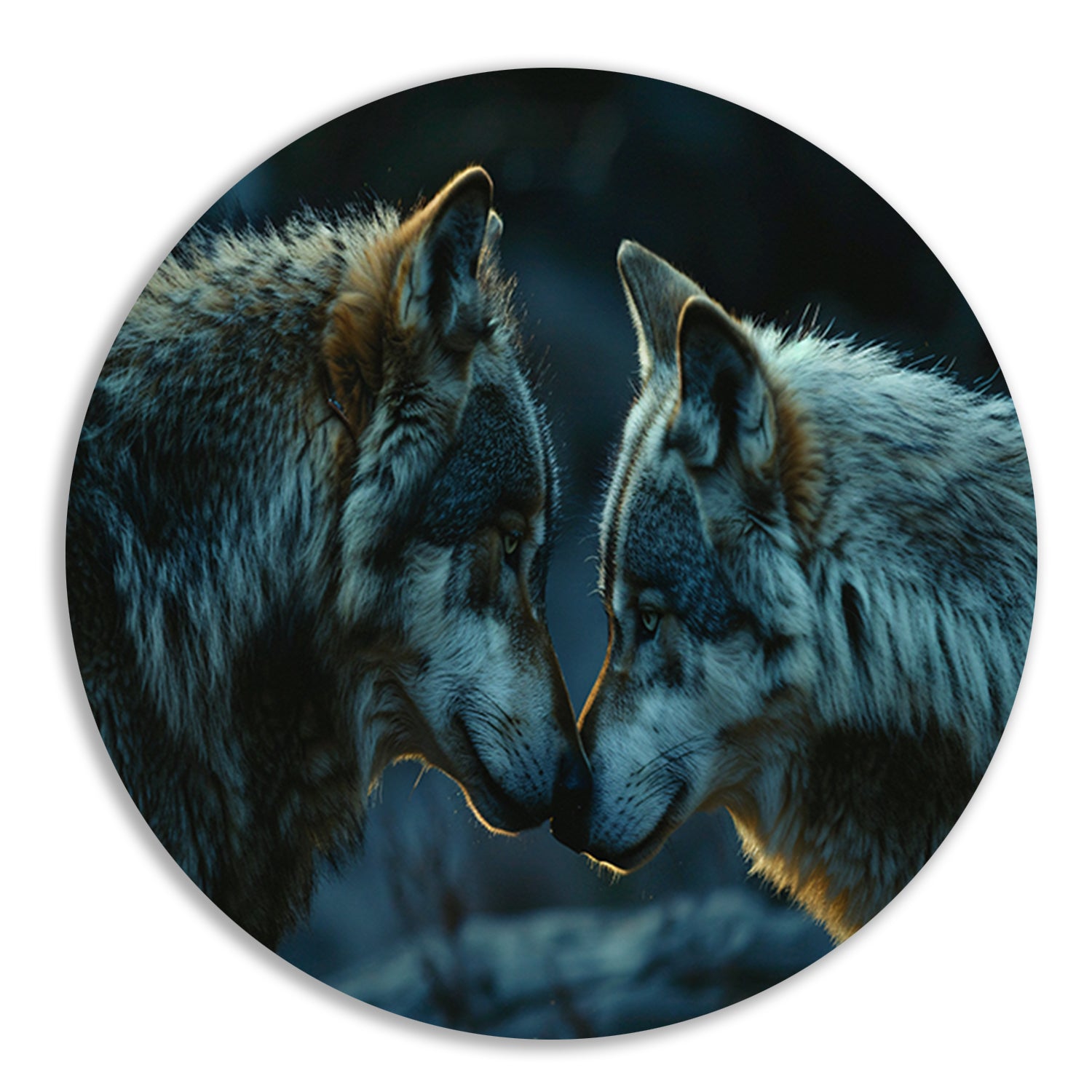 Twee wolven in donkere omgeving aluminium muurcirkel