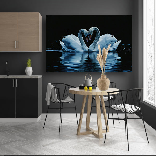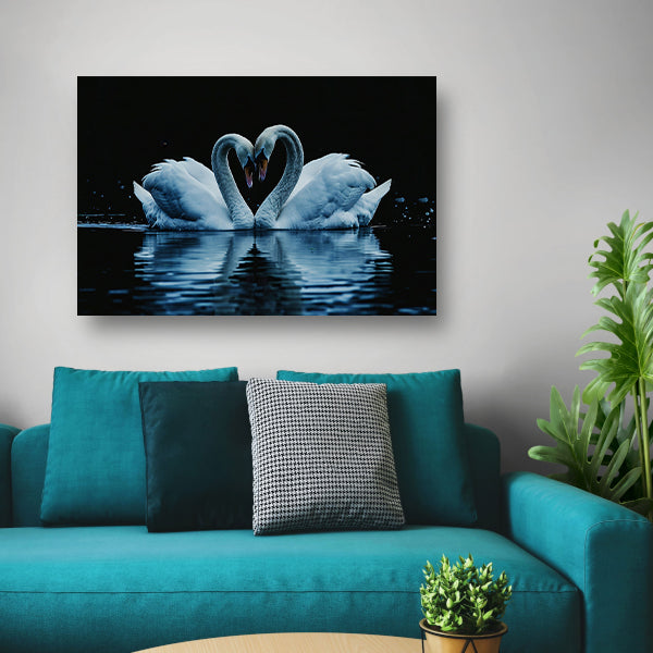 Twee zwanen in hartvorm op water poster