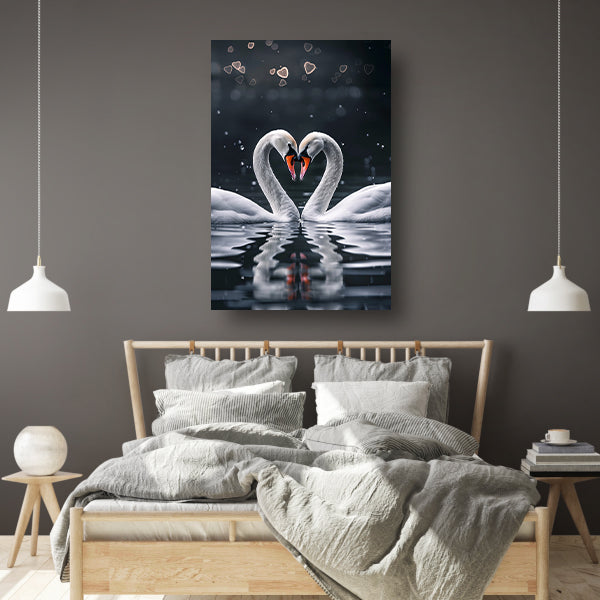 Twee zwanen vormen een hartvorm canvas