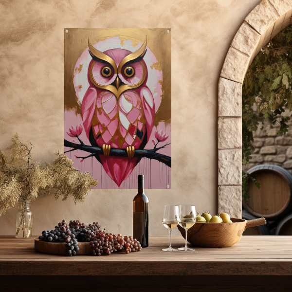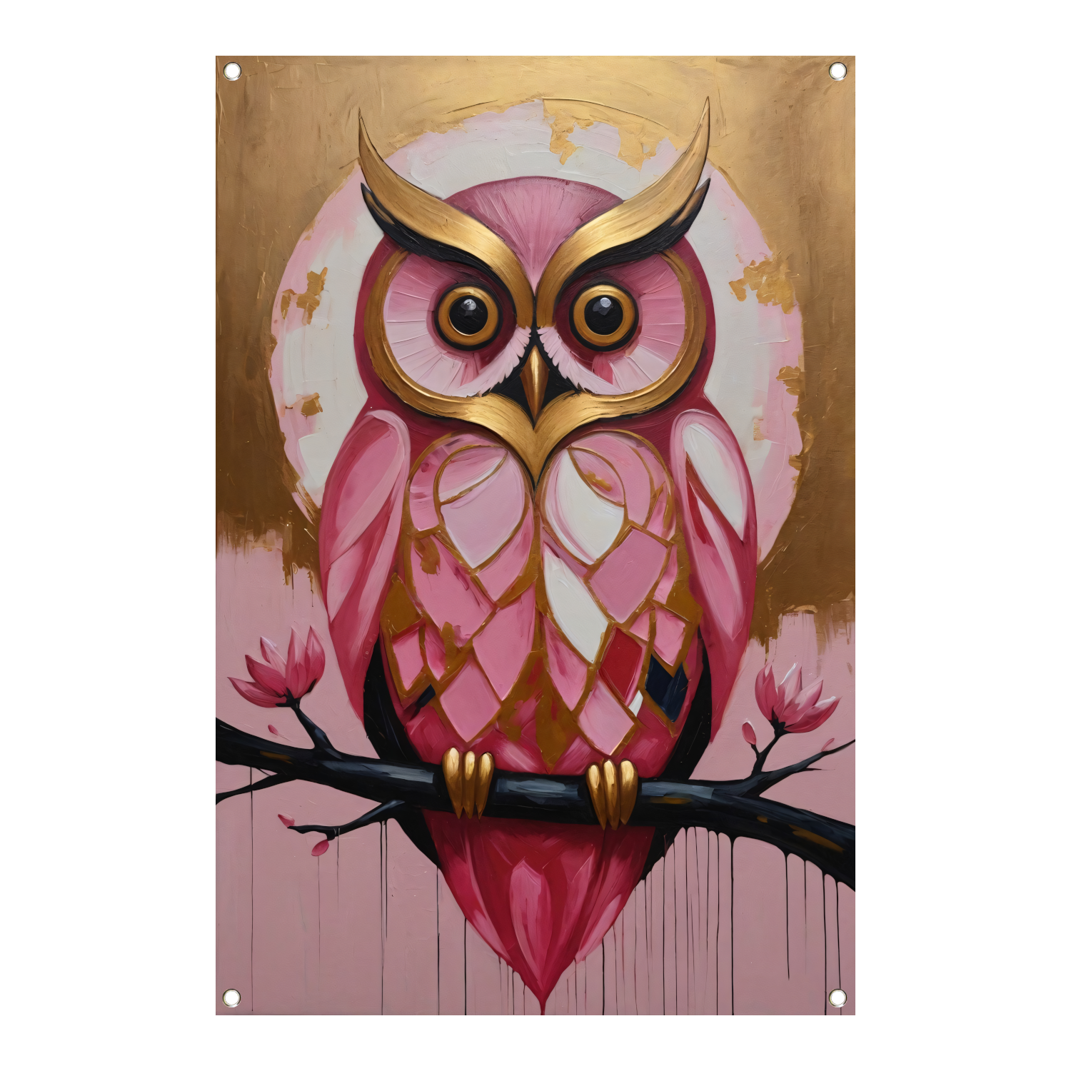 Uil met Gouden Achtergrond en Roze Veren tuinposter