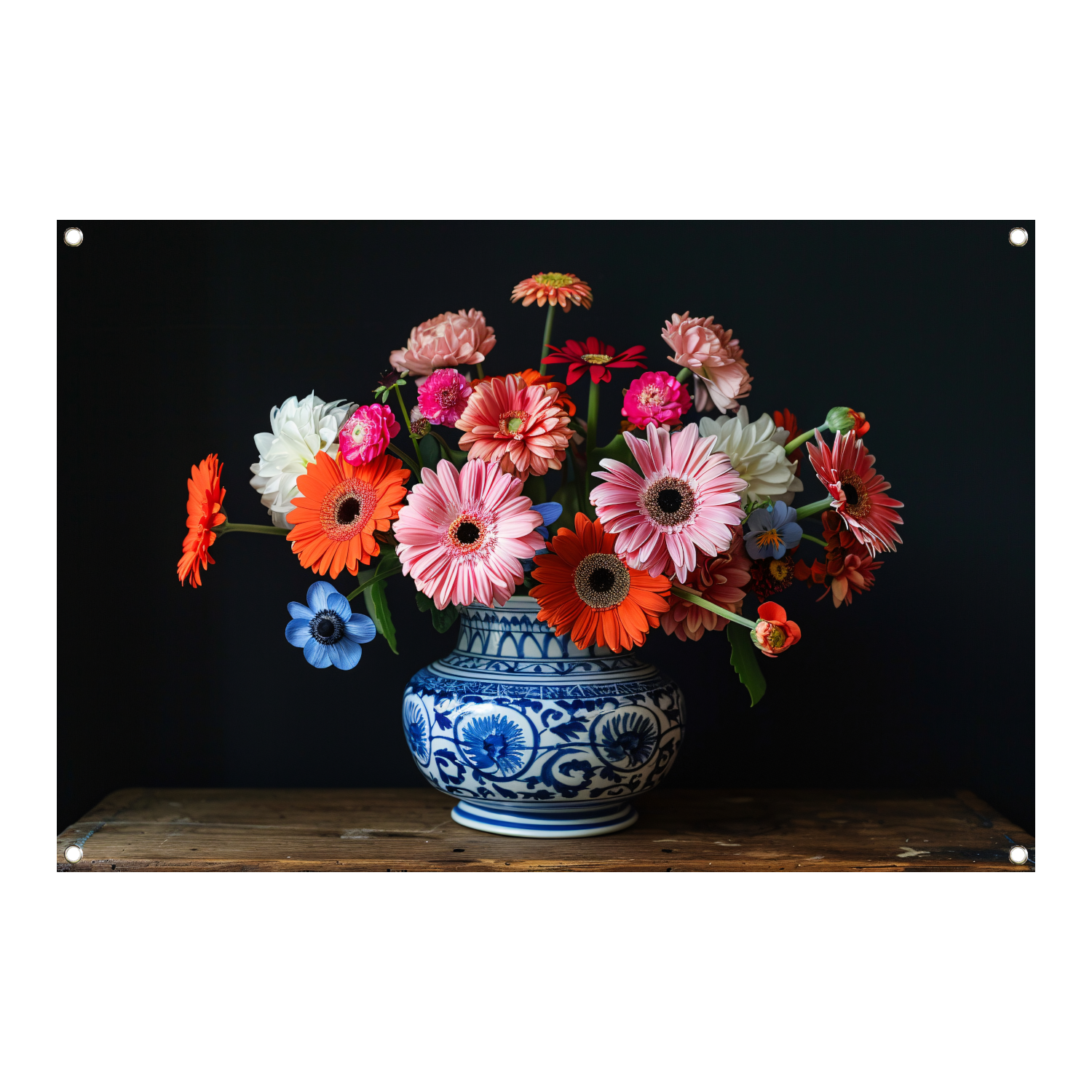 Uitgebreide collectie bloemen in een decoratieve vaas tuinposter