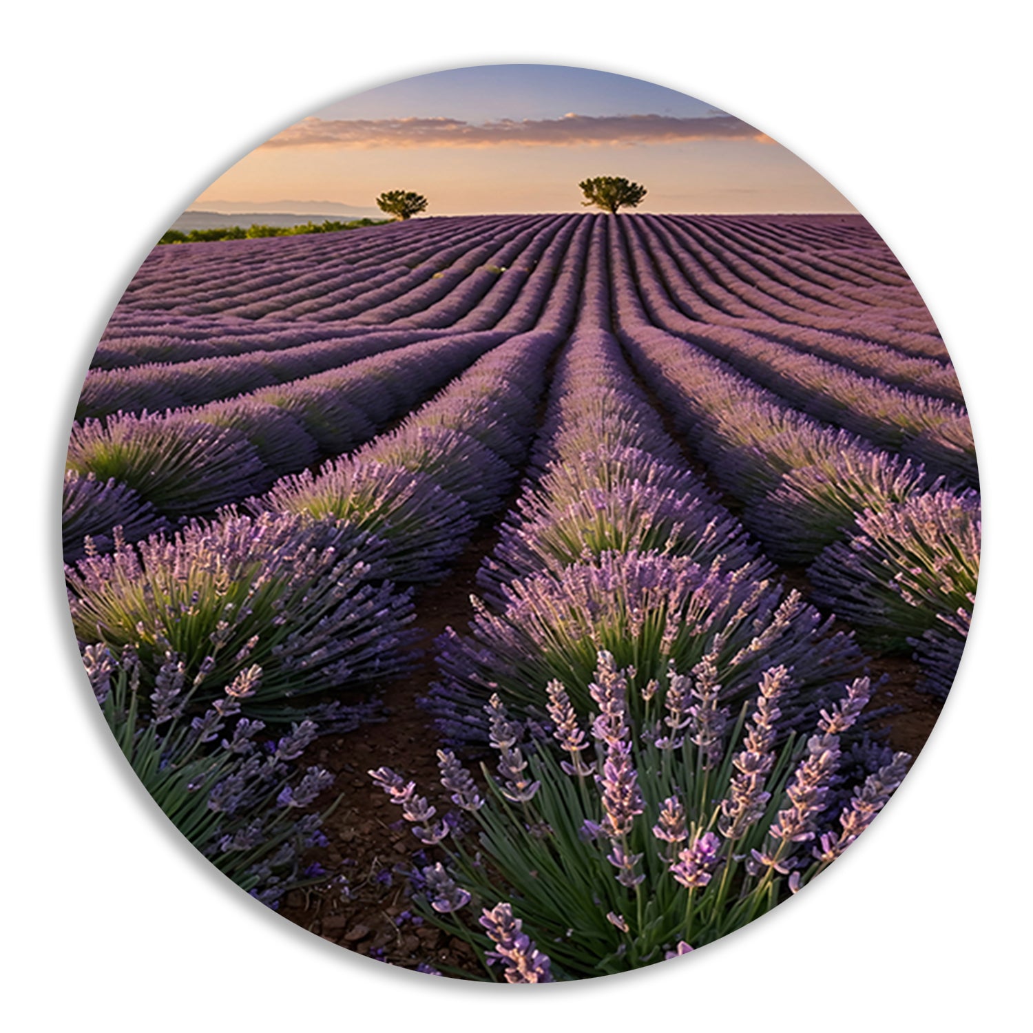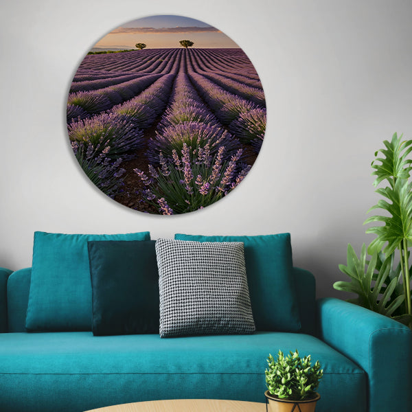 Uitgestrekt lavendelveld bij zonsondergang aluminium muurcirkel