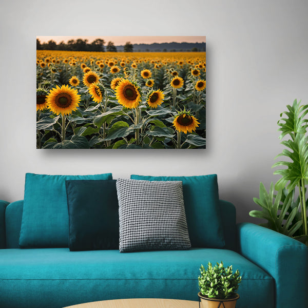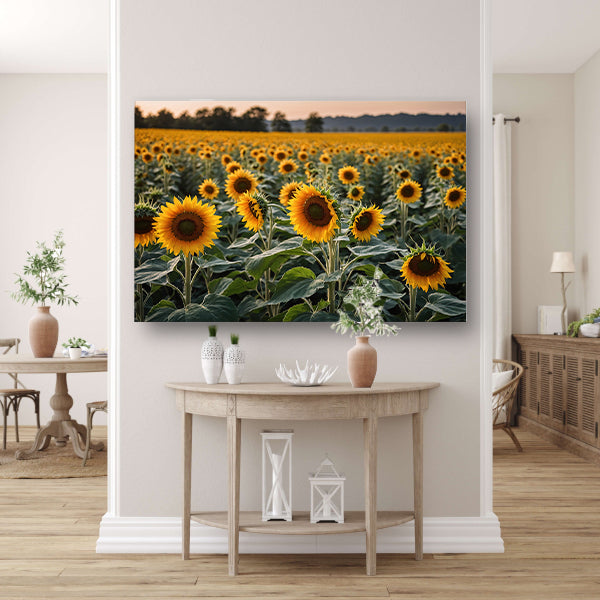 Uitgestrekt zonnebloemveld bij zonsondergang acrylglas