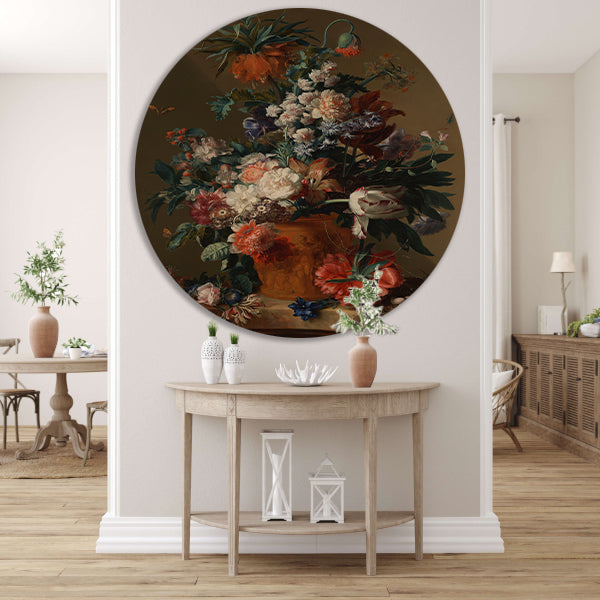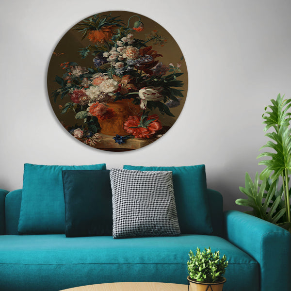 Vaas met bloemen - Jan van Huysum aluminium muurcirkel