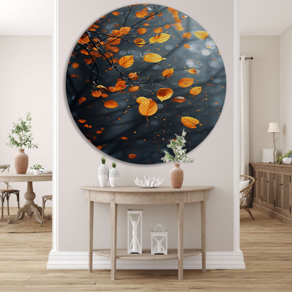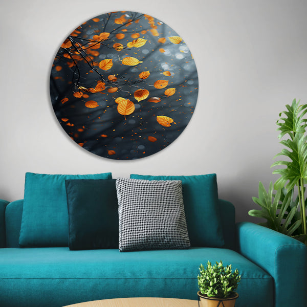 Vallende Herfstbladeren in het Bos aluminium muurcirkel