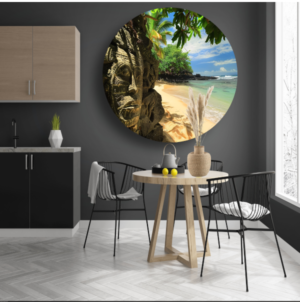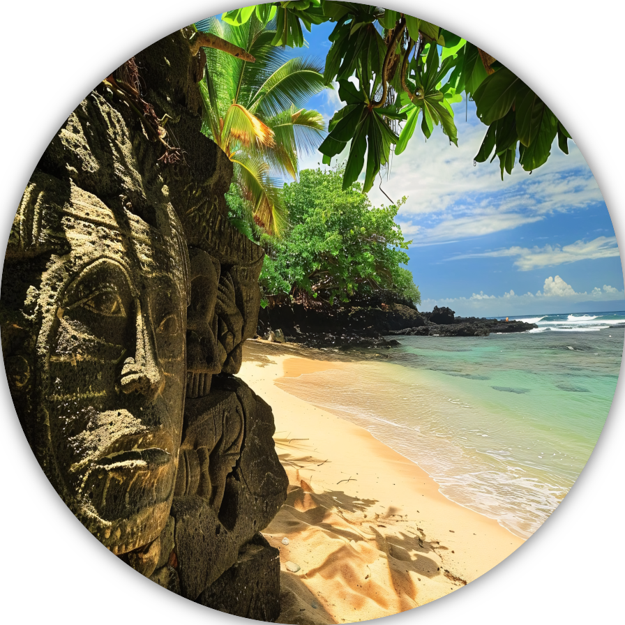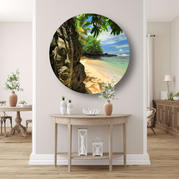 Verborgen Sculpturen aan een Tropisch Strand aluminium muurcirkel