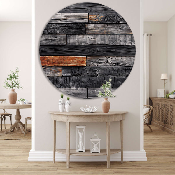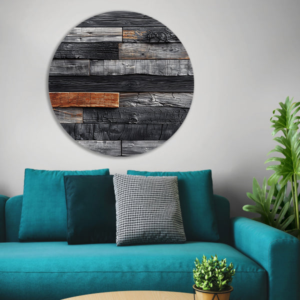 Verbrand Houten Wandpaneel aluminium muurcirkel