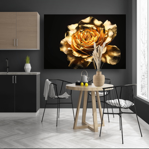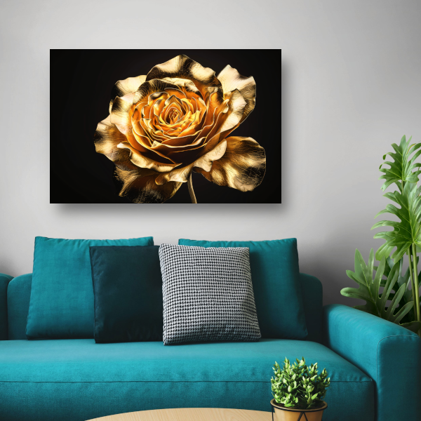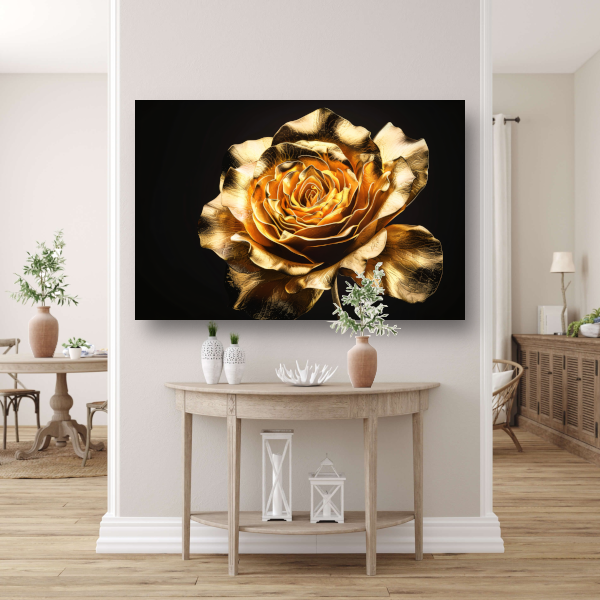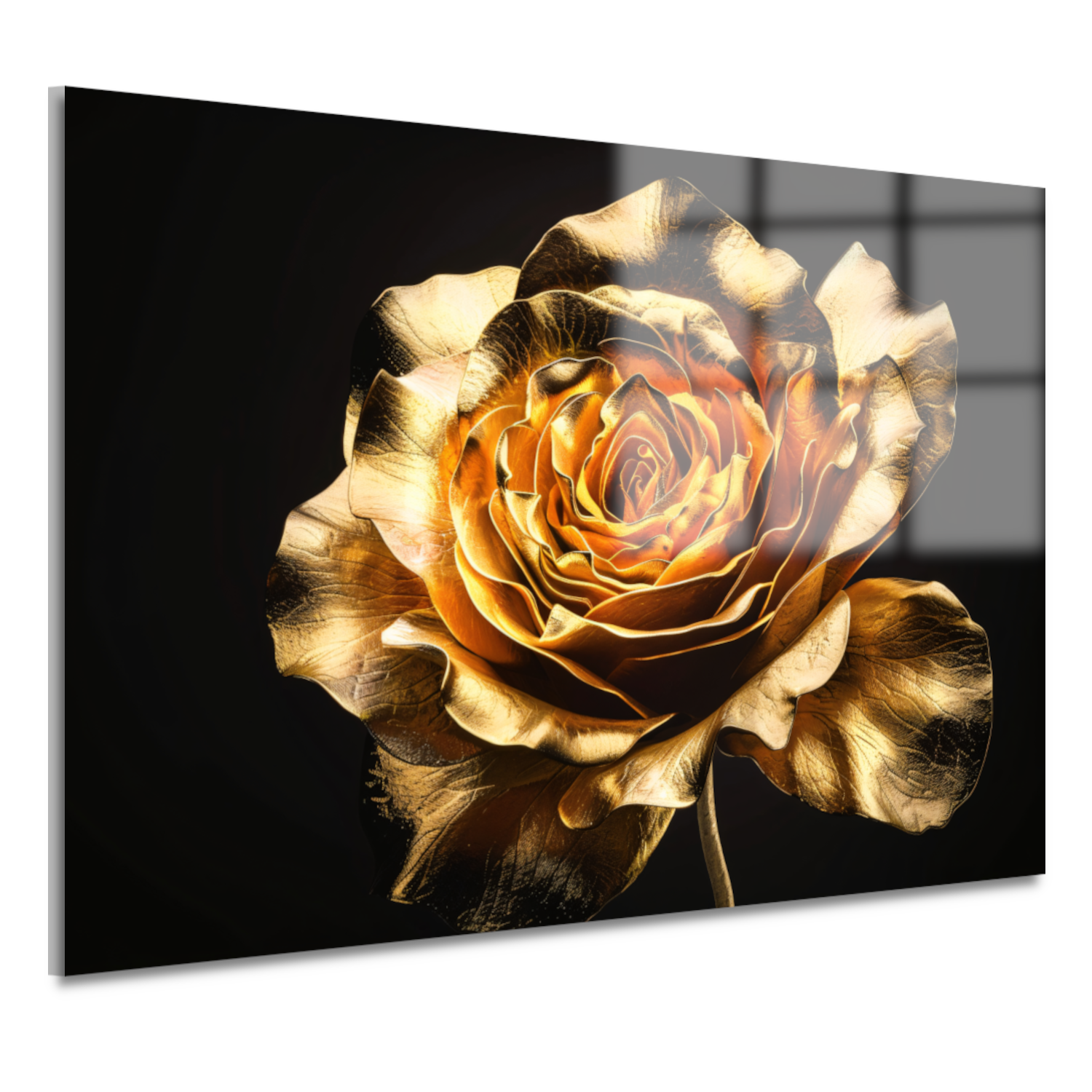 Vergulde Roos tegen een Zwarte Achtergrond acrylglas