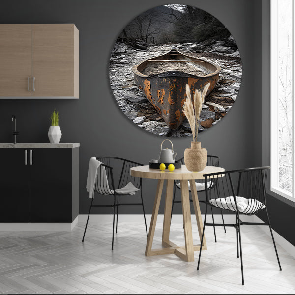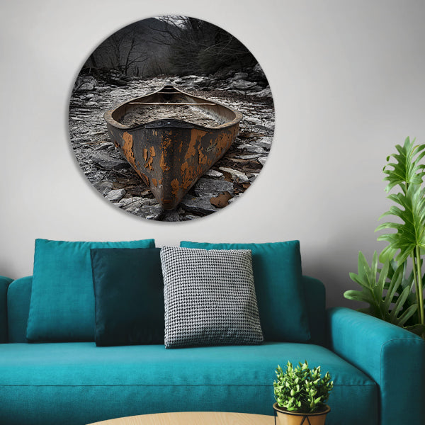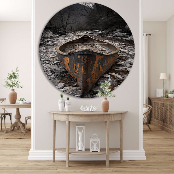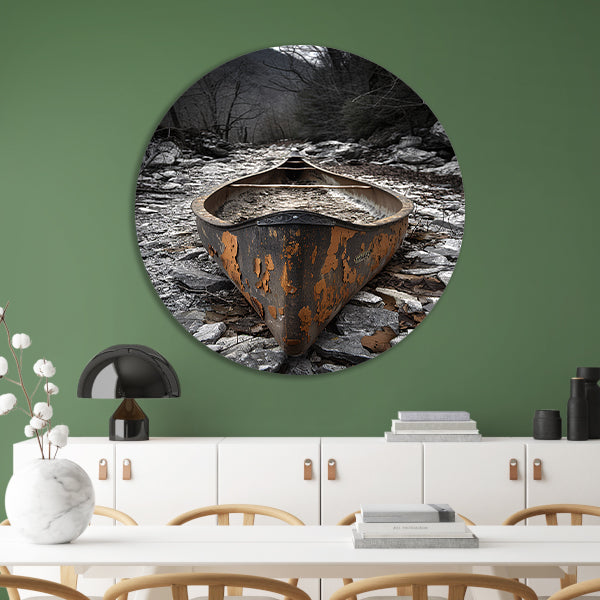 Verlaten Kano in Stenen Landschap aluminium muurcirkel
