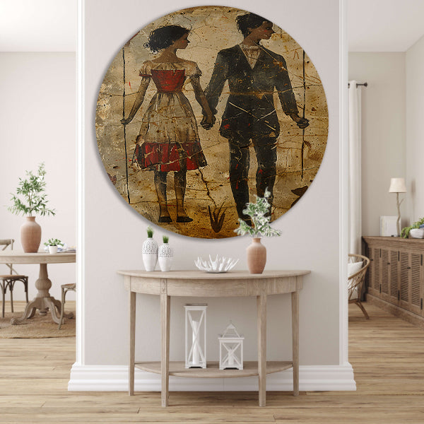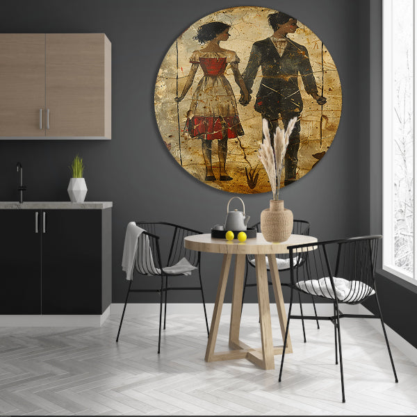 Verstrengelde Liefde met Hart en Hond aluminium muurcirkel