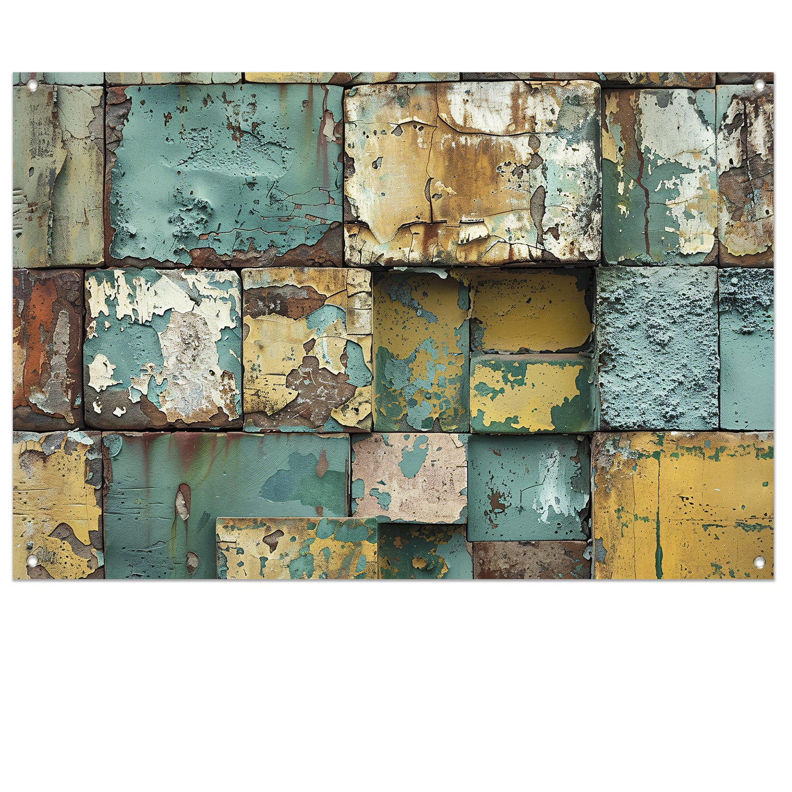 Verweerd abstract patroon schilderij met kleuren tuinposter