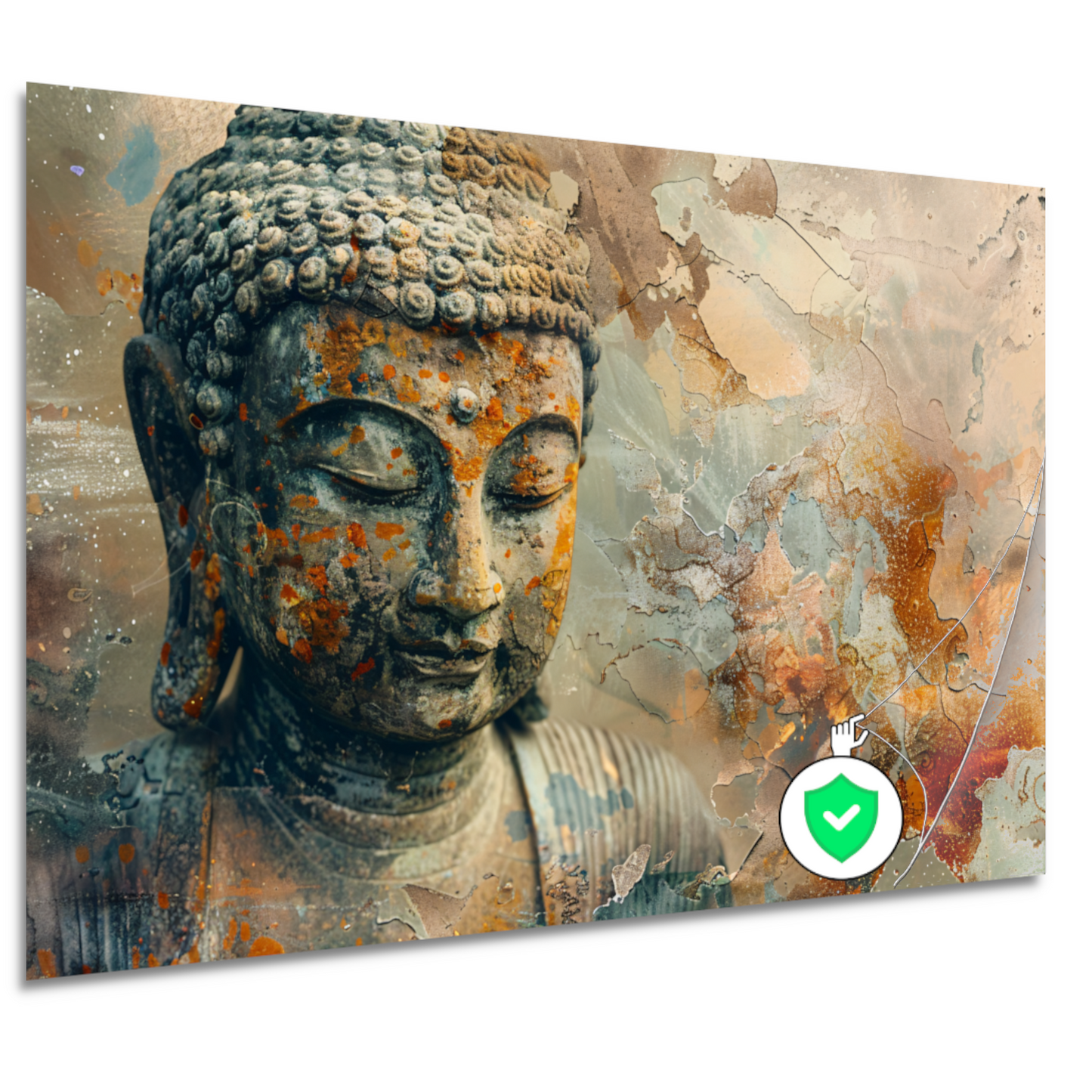 Verweerd Boeddha Hoofd met Abstracte Achtergrond poster