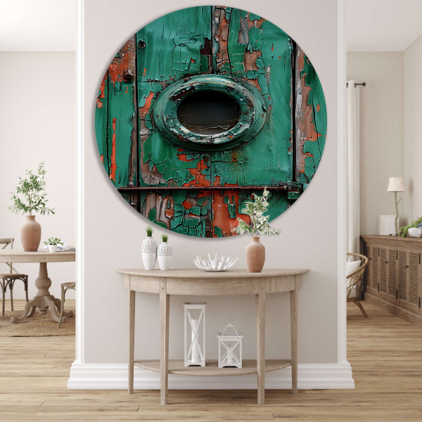 Verweerd Raam in Afbladderende Groene Verf forex muurcirkel