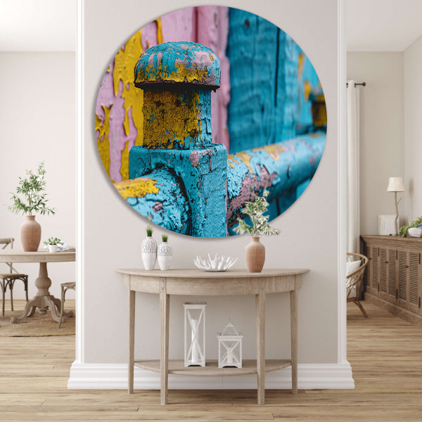 Verweerde Verf Houten Hek aluminium muurcirkel