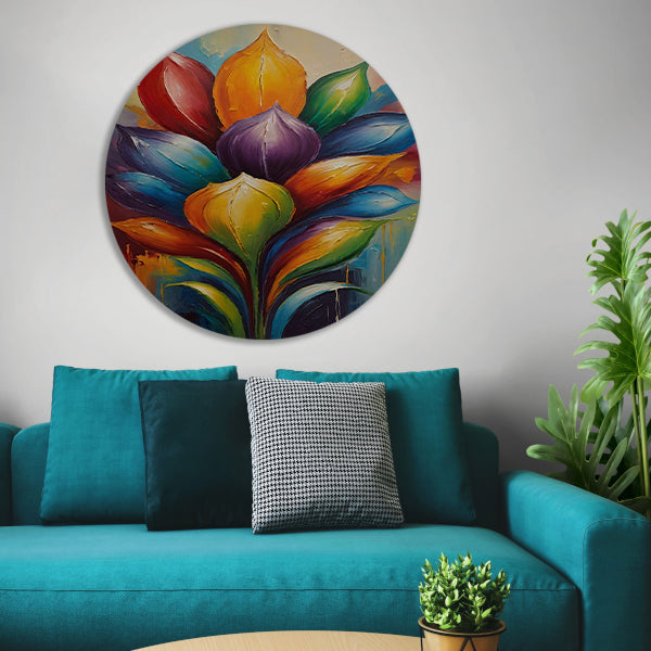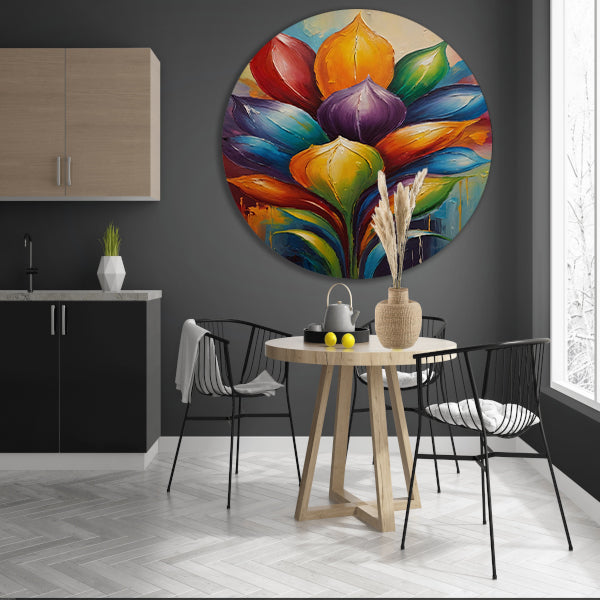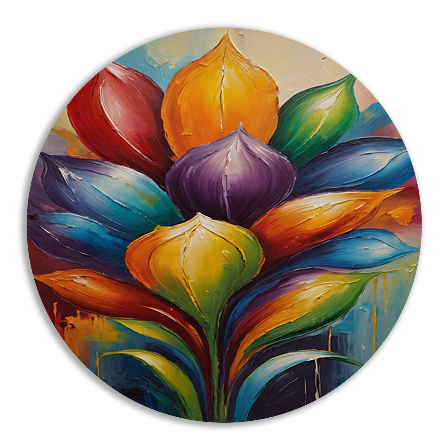 Vibrant Rainbow Flower in Abstract Expression aluminium muurcirkel