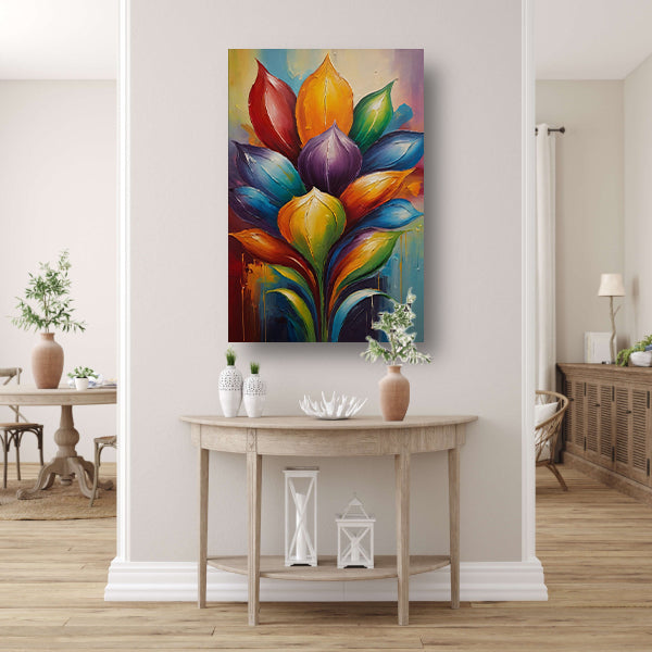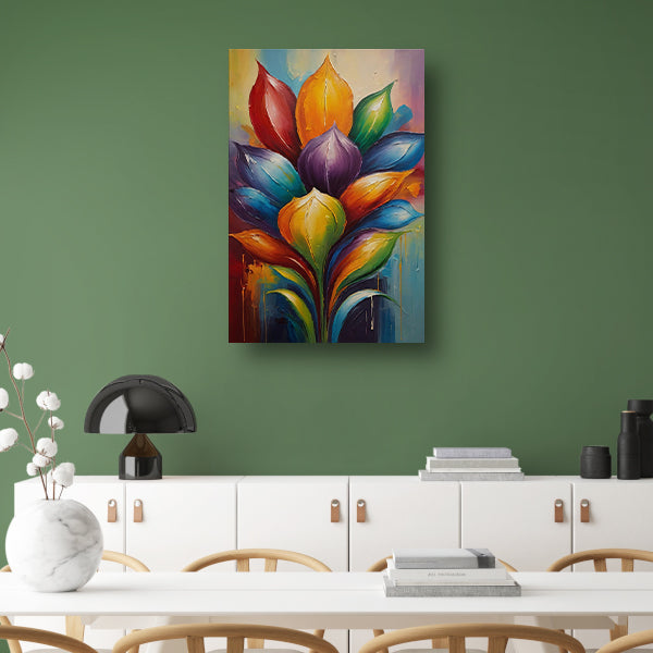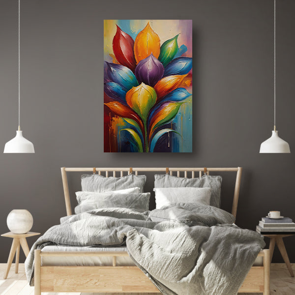 Vibrant Rainbow Flower in Abstract Expression canvas met baklijst