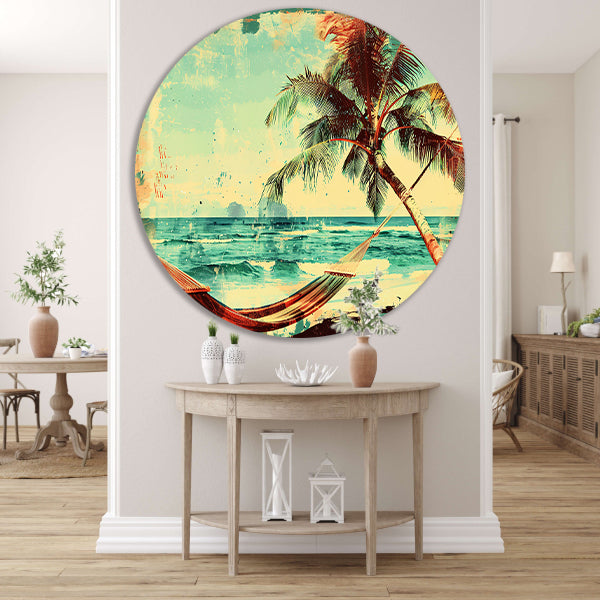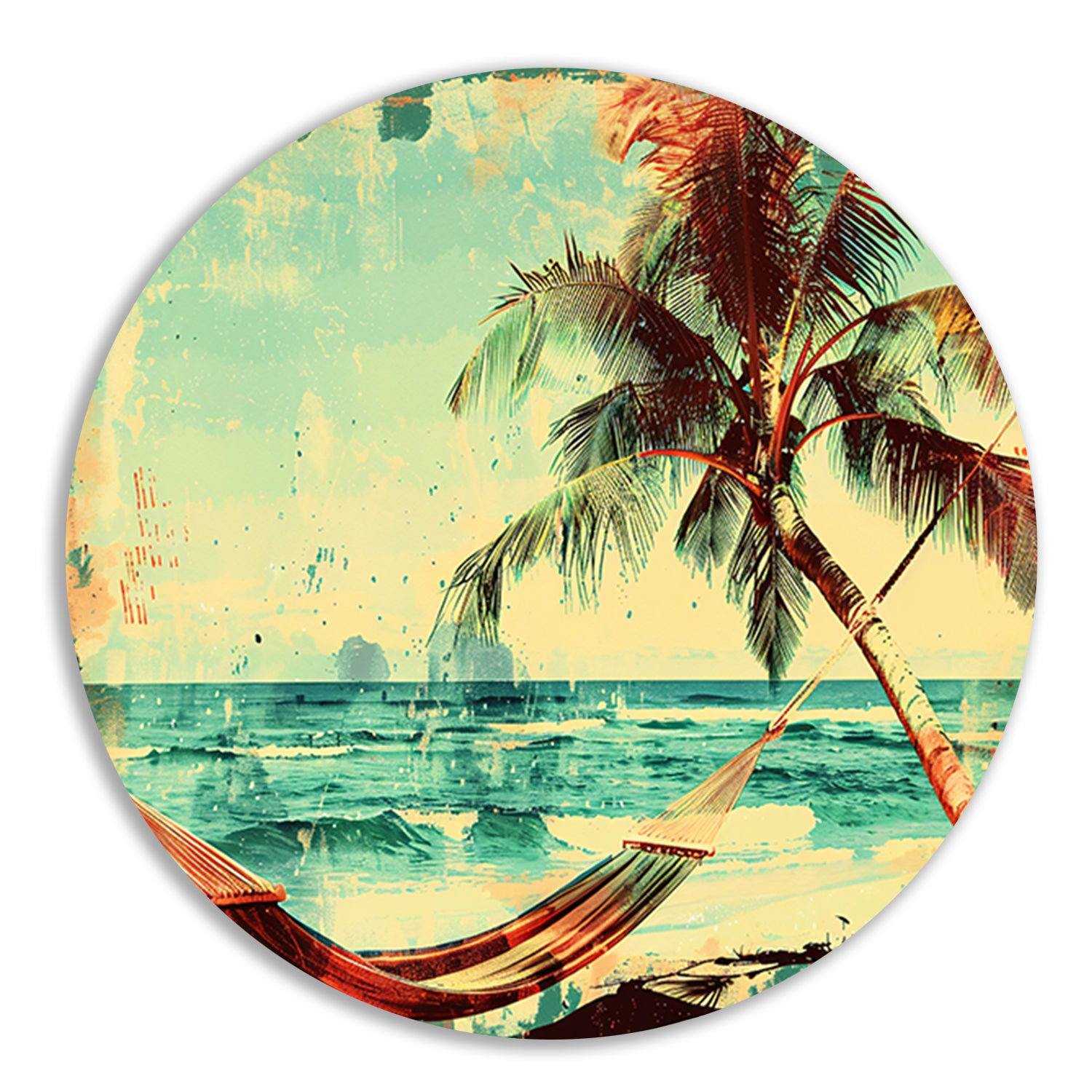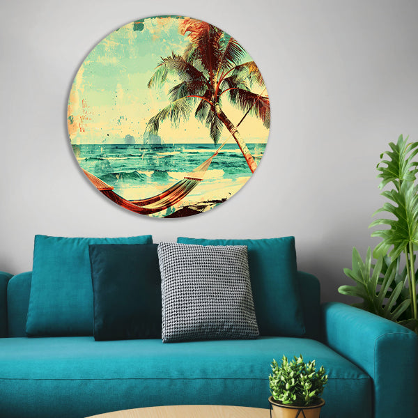 Vintage strand met tropische hangmat aluminium muurcirkel