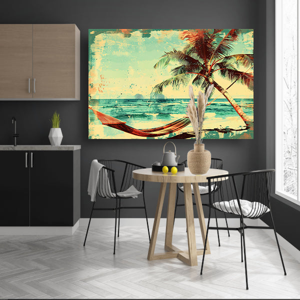 Vintage strand met tropische hangmat poster