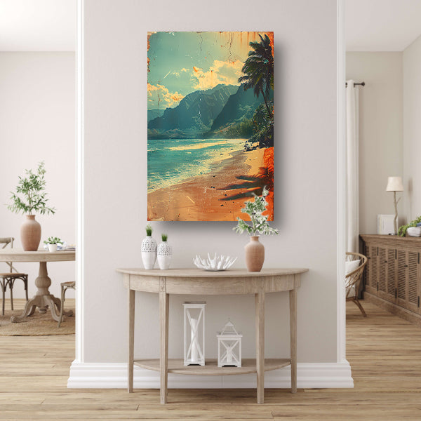 Vintage Strandtafereel met Palmbomen poster