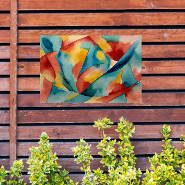 Deze prachtige tuinposter is een echte eyecatcher voor in jouw tuin. Het is een liggende poster die verkrijgbaar is in verschillende formaten, zodat je de perfecte maat kunt kiezen voor jouw buitenruimte. De poster is voorzien van een abstracte afbeelding, gemaakt met levendige waterverf kleuren.