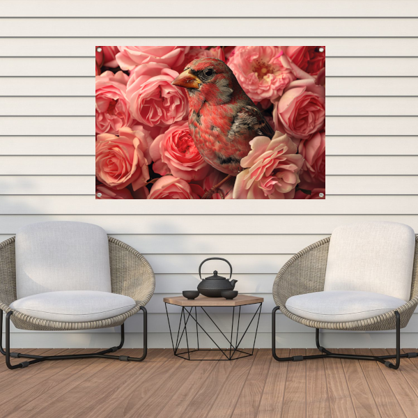 Onze tuinposters zijn UV- en waterbestendig, waardoor ze bestand zijn tegen zon en regen en hun kleuren langdurig mooi blijven. Alle tuinposters van De Muurdecoratie zijn voorzien van ringen in de hoeken, zodat je ze eenvoudig kunt ophangen. Let op: onze tuinposters worden niet met ophangsysteem geleverd.