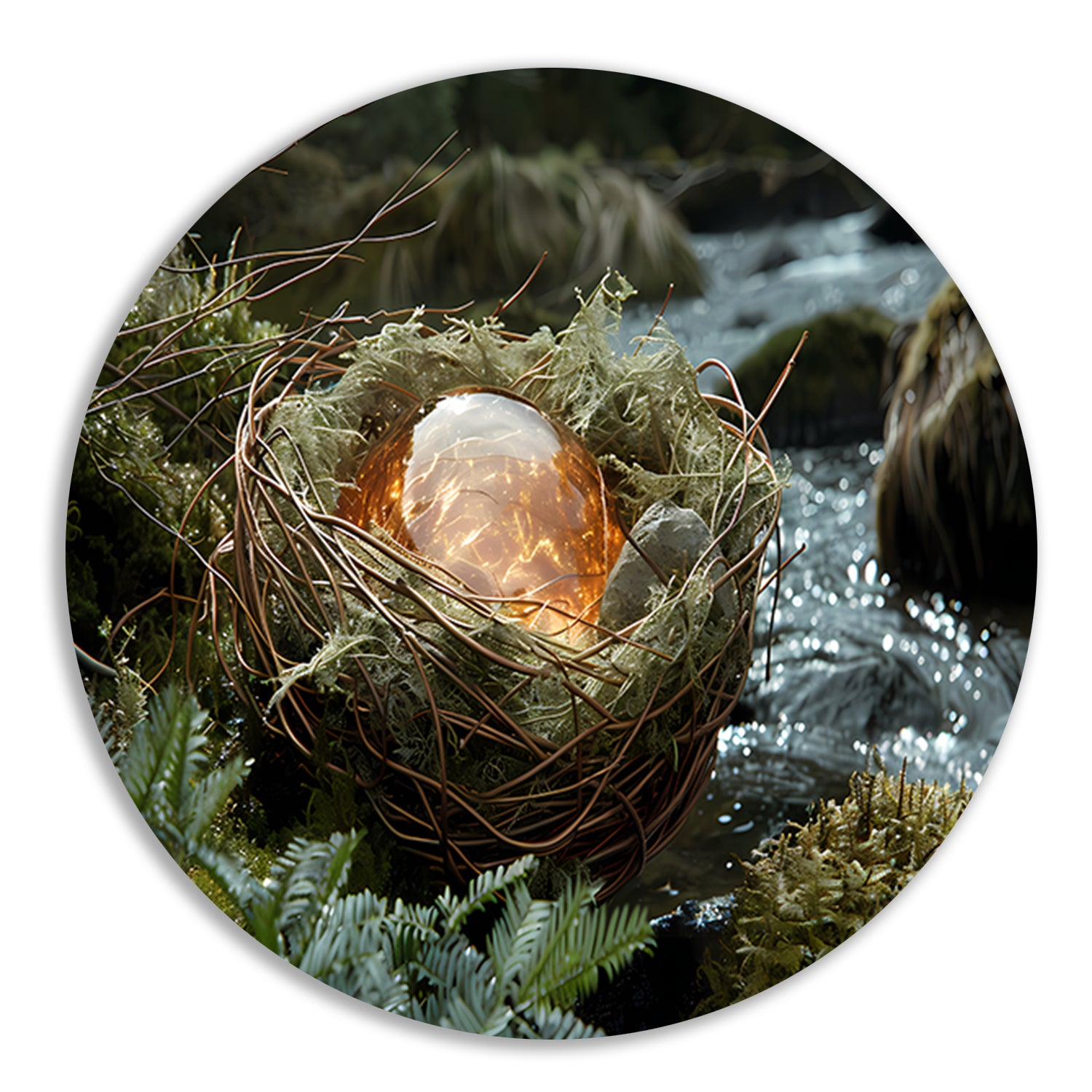 Als je op zoek bent naar een unieke en stijlvolle toevoeging aan jouw slaapkamer, dan is deze muurcirkel met het vogelnest met glasbal een uitstekende keuze. Bestel hem vandaag nog en geniet binnenkort van dit prachtige kunstwerk aan jouw muur.