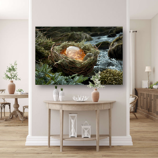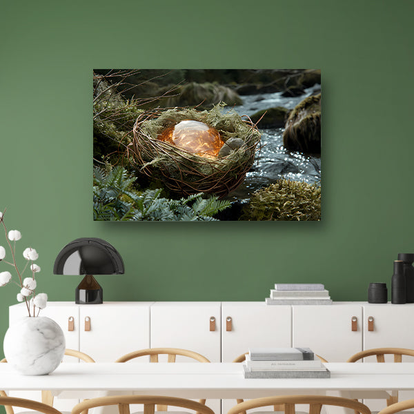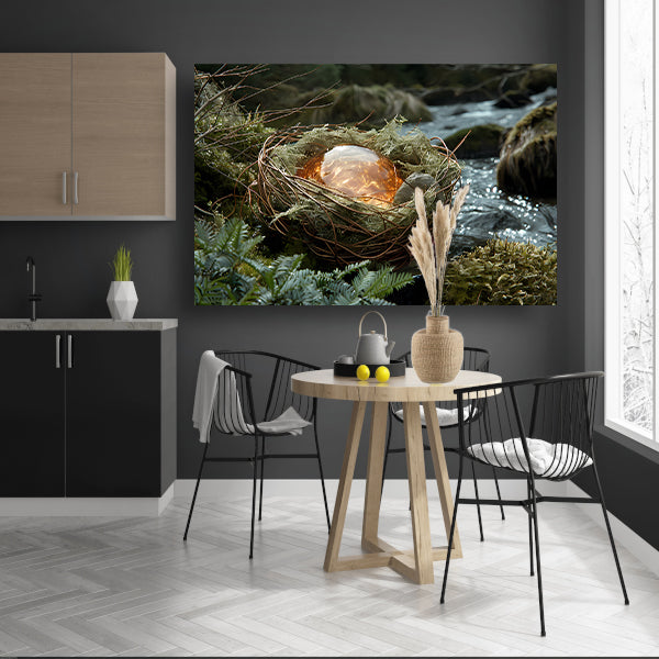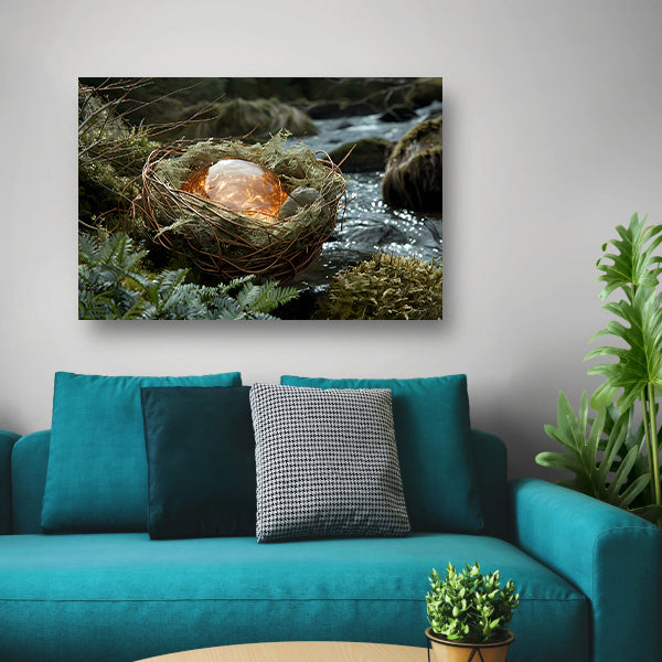 Vogelnest met glasbal in slaapkamer poster