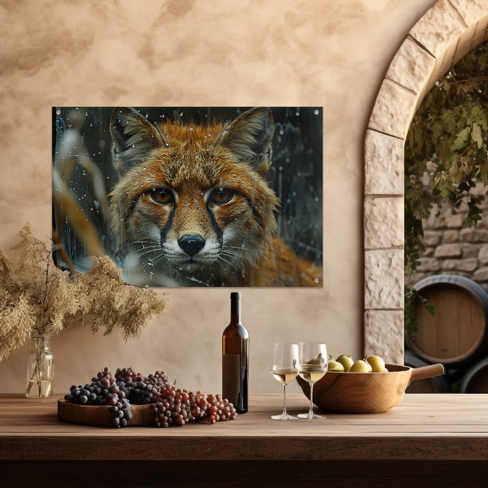 Vos kijkt door raam tuinposter