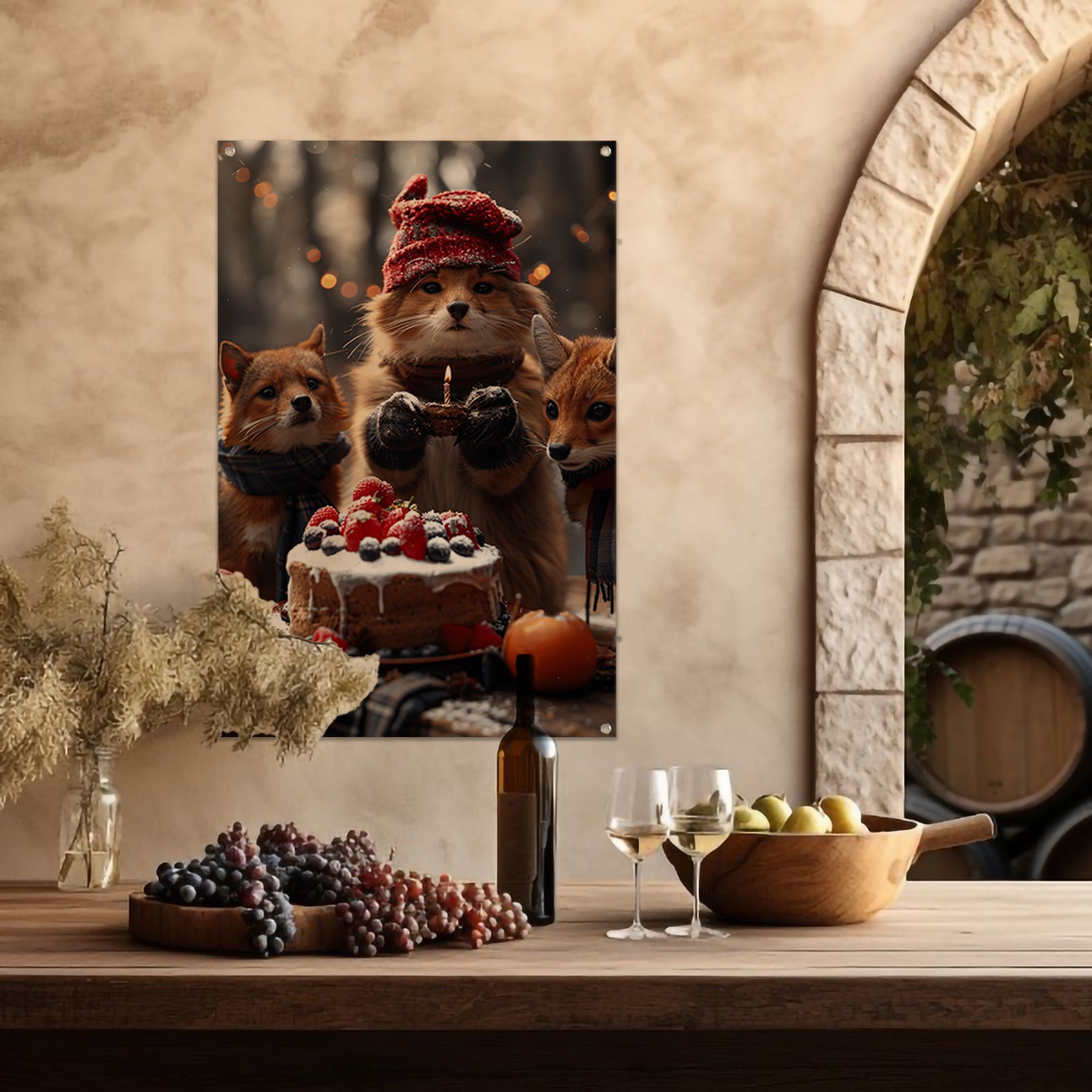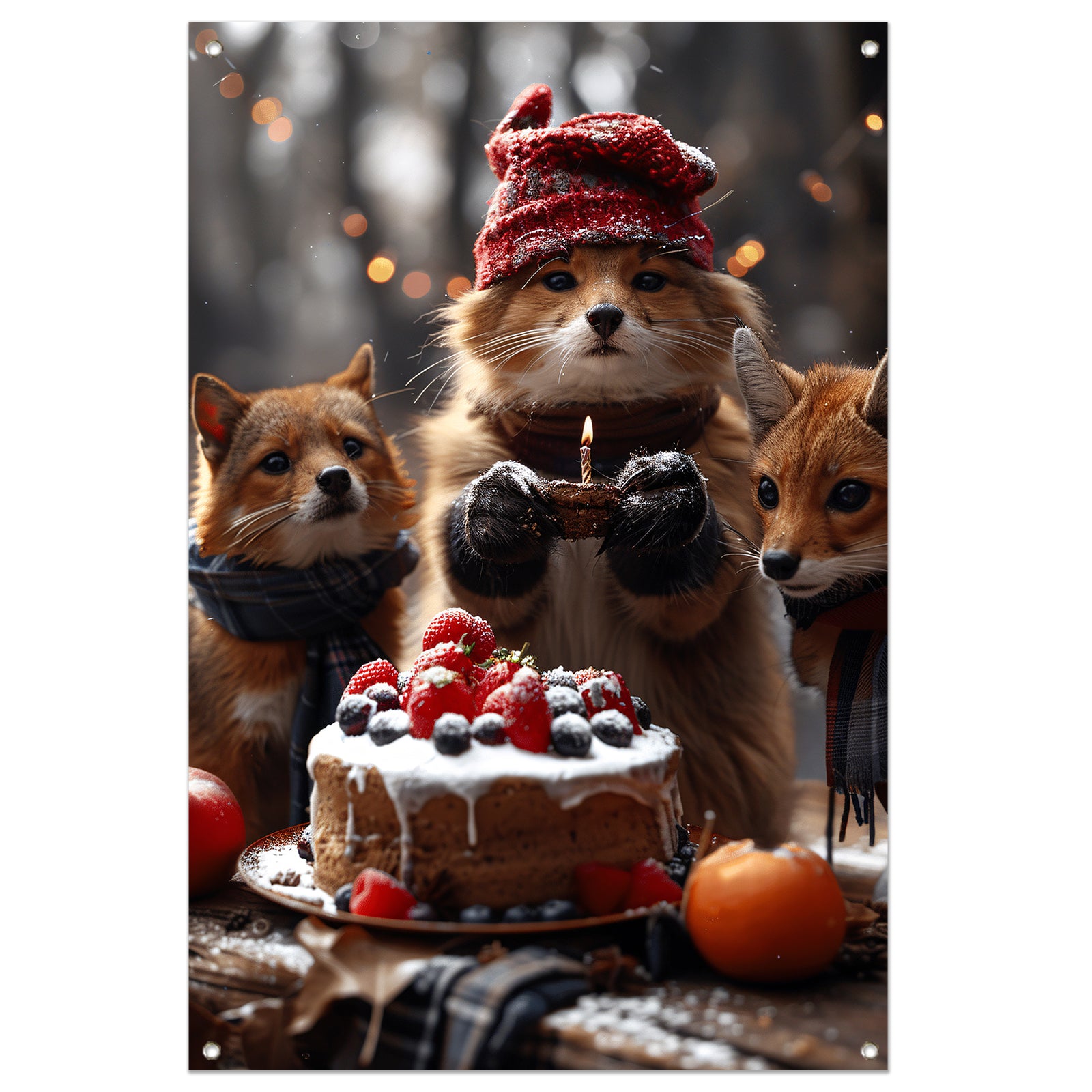 Vos Viert Verjaardag in Winterbos tuinposter
