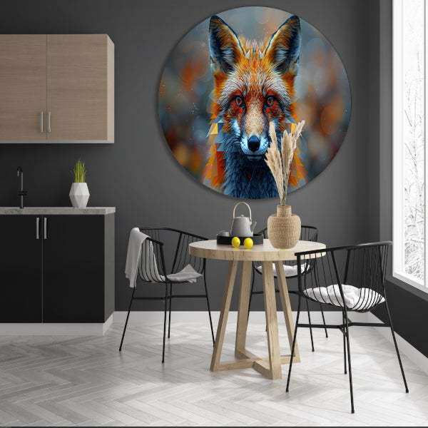 De afbeelding van de vossenkop is haarscherp en gedetailleerd, waardoor elk detail prachtig tot zijn recht komt. Het geeft een speelse en natuurlijke touch aan elke ruimte. De muurcirkel wordt geleverd met een ophangplaat, waardoor je hem eenvoudig kunt bevestigen aan de muur.