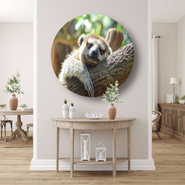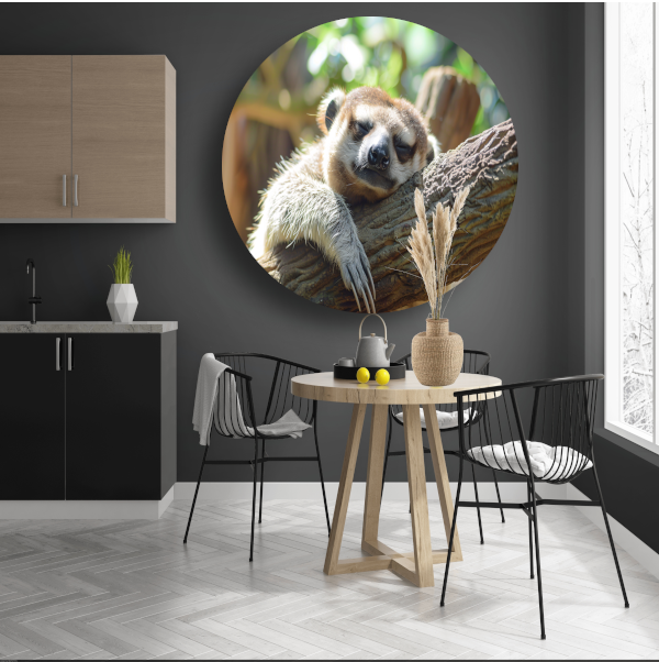Voeg dit prachtige kunstwerk toe aan je interieur en geniet van de serene uitstraling die het met zich meebrengt. Perfect voor een slaapkamer, woonkamer, kantoor of elke andere ruimte waar je wat rust en ontspanning kunt gebruiken. Bestel vandaag nog jouw vreedzame luiaard muurcirkel en breng wat natuurlijke schoonheid in huis!