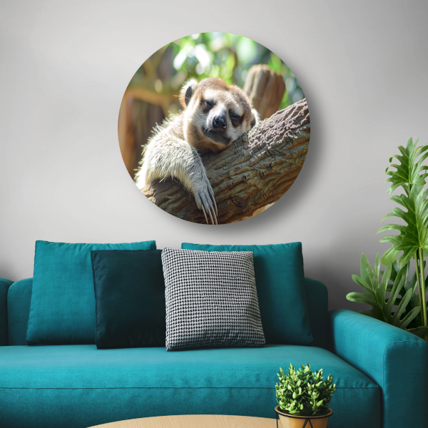 Vreedzame luiaard slapend in het zonlicht aluminium muurcirkel