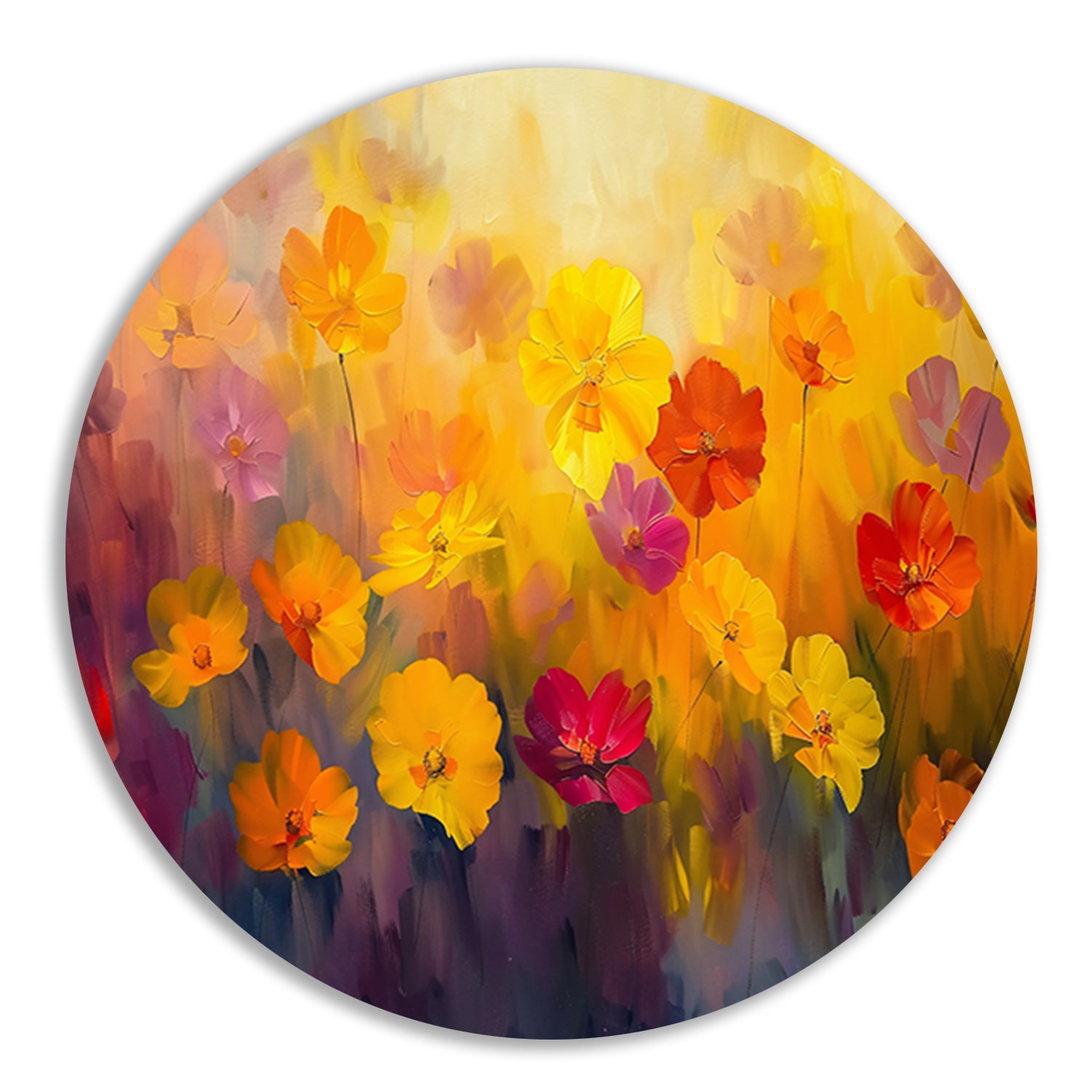 Vrolijk bloemenveld met felle kleuren forex muurcirkel