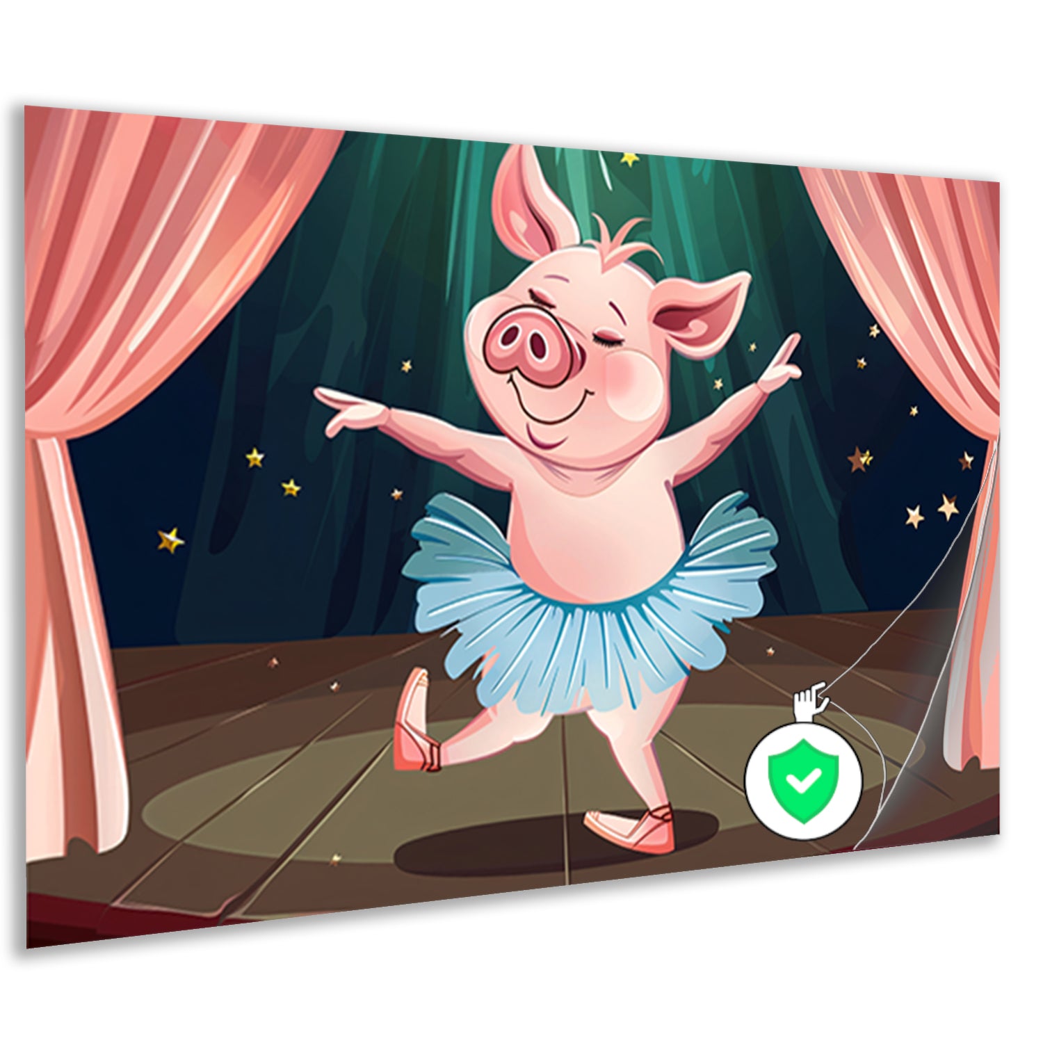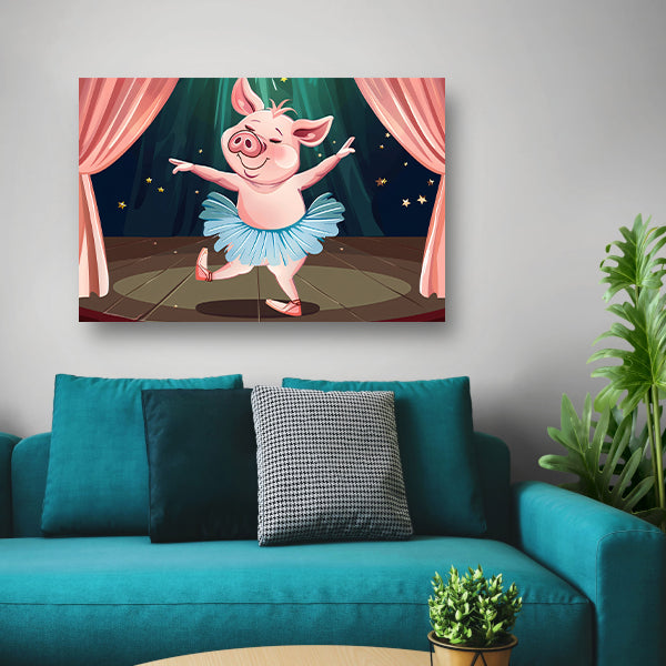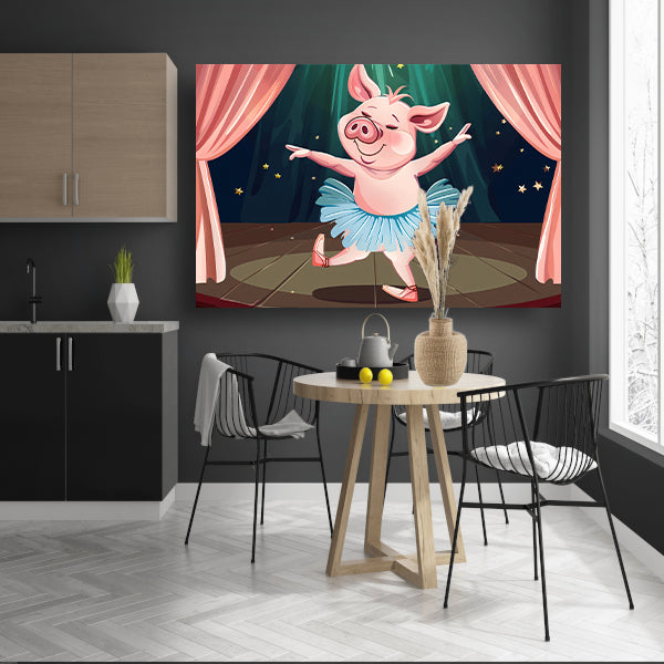 Vrolijk dansend varken in tutu op podium poster