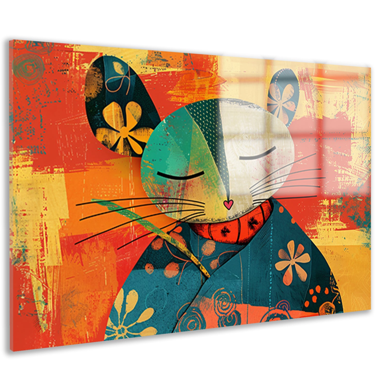 Vrolijke abstracte kat met kleurrijke bloemen acrylglas