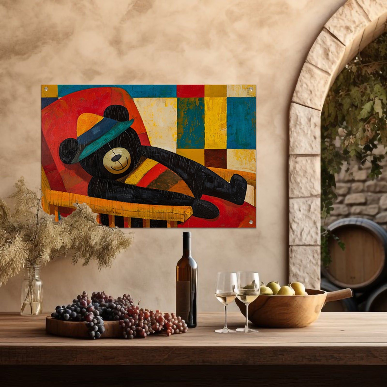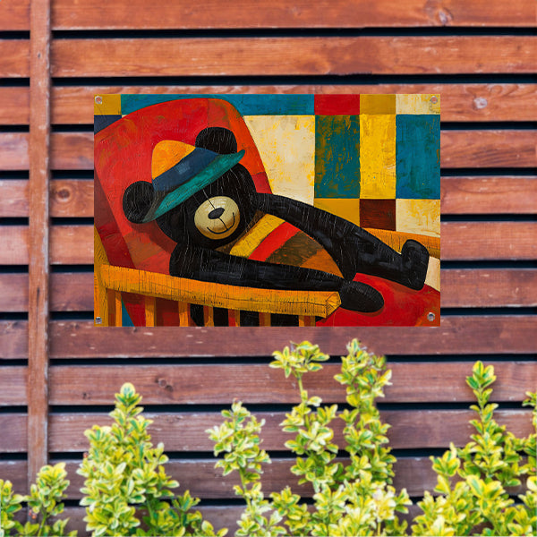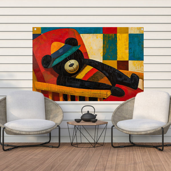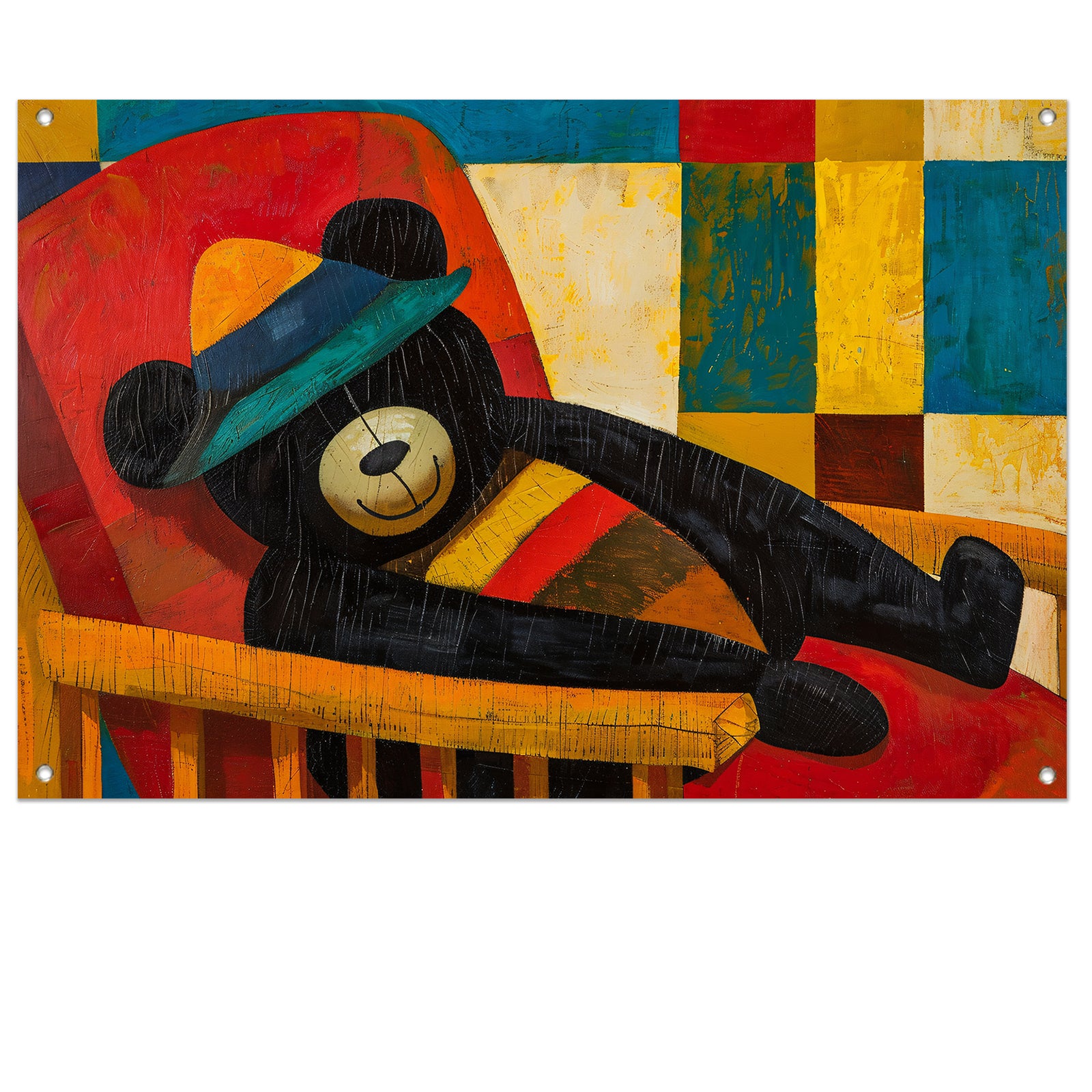 Vrolijke beer in kubistisch kleurenpalet tuinposter