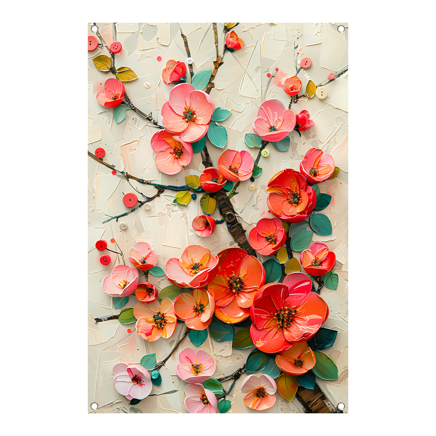 Vrolijke kleurrijke bloemen en takken kunstwerk tuinposter