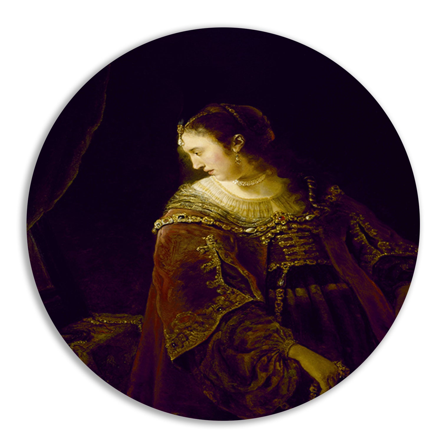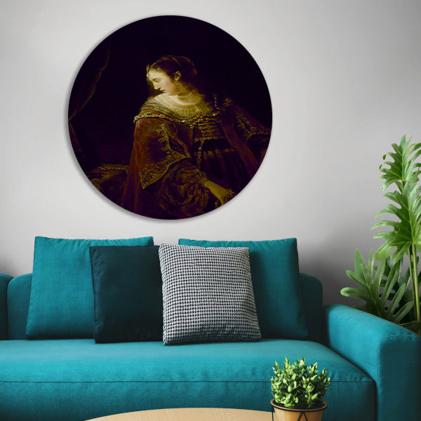 Deze muurcirkel is een unieke en stijlvolle toevoeging aan elke kamer in huis en zal zeker de aandacht trekken van gasten. Haal nu dit prachtige kunstwerk in huis en geniet elke dag van de schoonheid van "Vrouw aan haar kaptafel" van Ferdinand Bol.