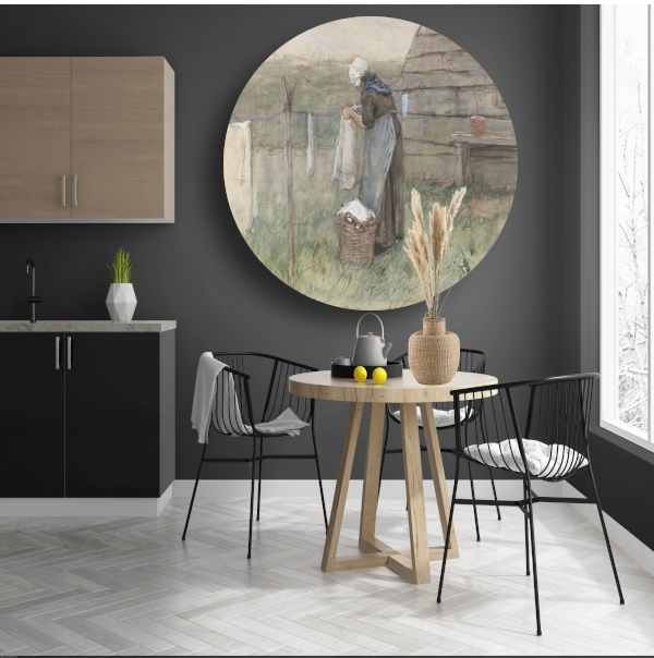 Vrouw bij een waslijn - Anton Mauve forex muurcirkel